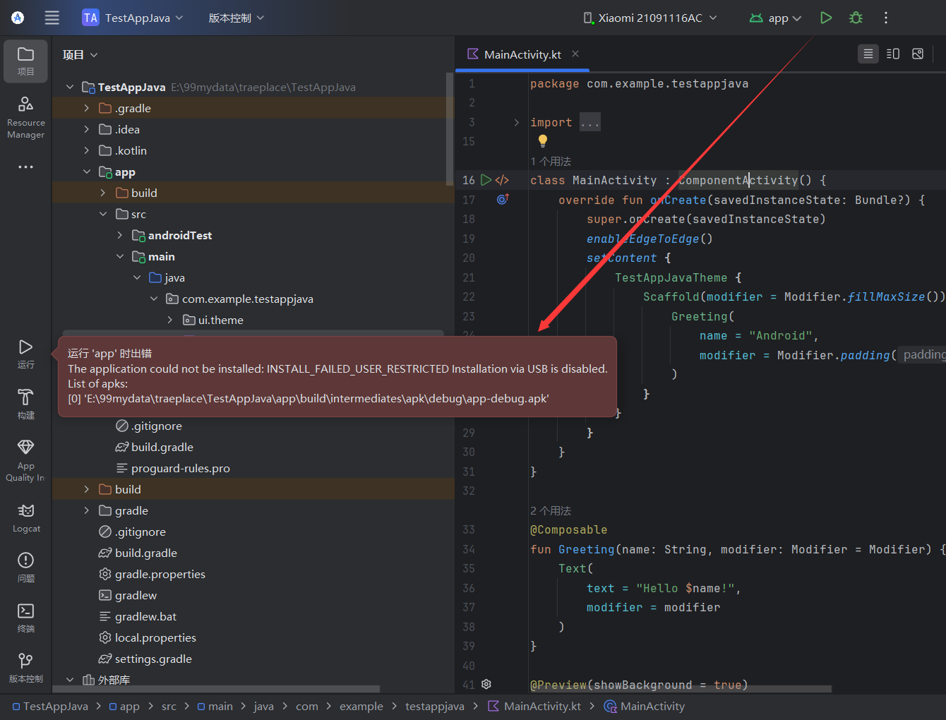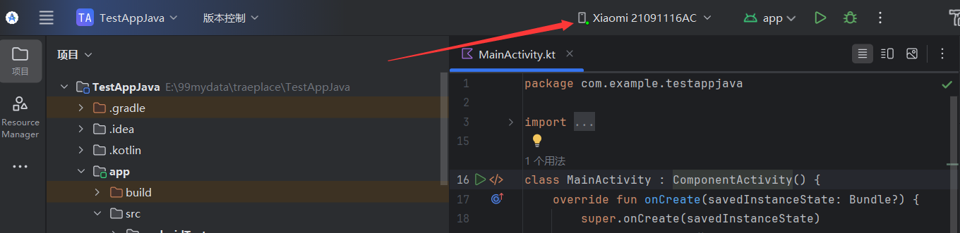 E:\99mydata\traeplace\TestAppJava以及右侧出现的一个 小叉号 (X) 或 设置图标。 -