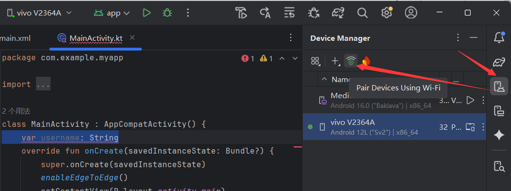 链接过程中,手机会有相关提示,通过后,在Android Studio里会看到手机设备