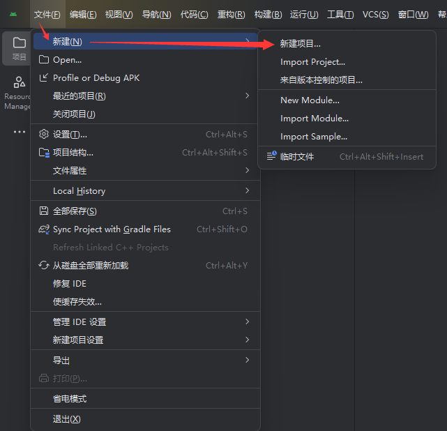 在 Android Studio 中安全地删除一个项目及其所有物理文件,需要遵循两个独立的步骤: