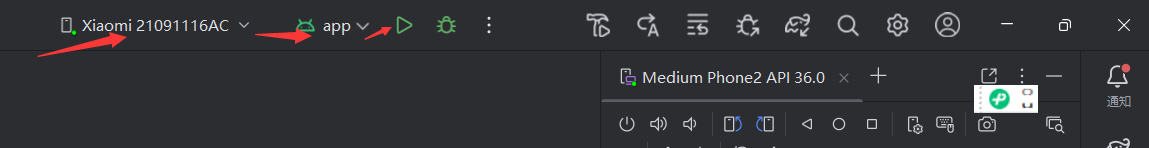 选择手机设备,然后点击运行 ,如下图,就会将程序发给手机设备: