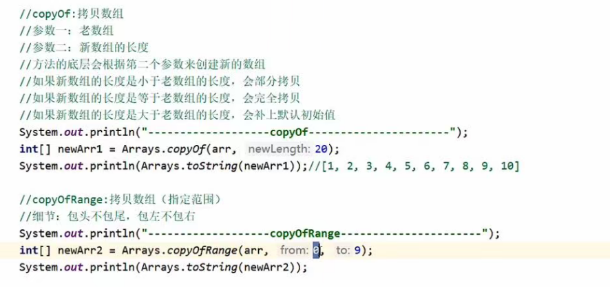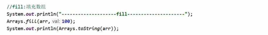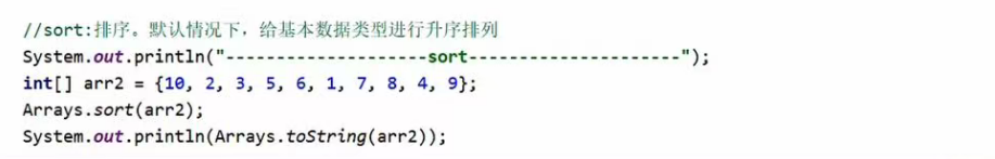 import java.util.Comparator;public class sort_test {public static void main(String[] args) {Integer[]arr={1,8,7,2,54,96,20};Arrays.sort(arr, new Comparator<Integer>() {@Overridepublic int compare(Integer o1, Integer o2) {return o1-o2;//正序 o2-o1是降序}});System.out.println(Arrays.toString(arr));System.out.println("----------------------");System.out.println(Arrays.toString(arr));System.out.println(Arrays.binarySearch(arr,3));System.out.println(Arrays.toString(Arrays.copyOf(arr,5)));Arrays.fill(arr,200);System.out.println(Arrays.toString(arr));}