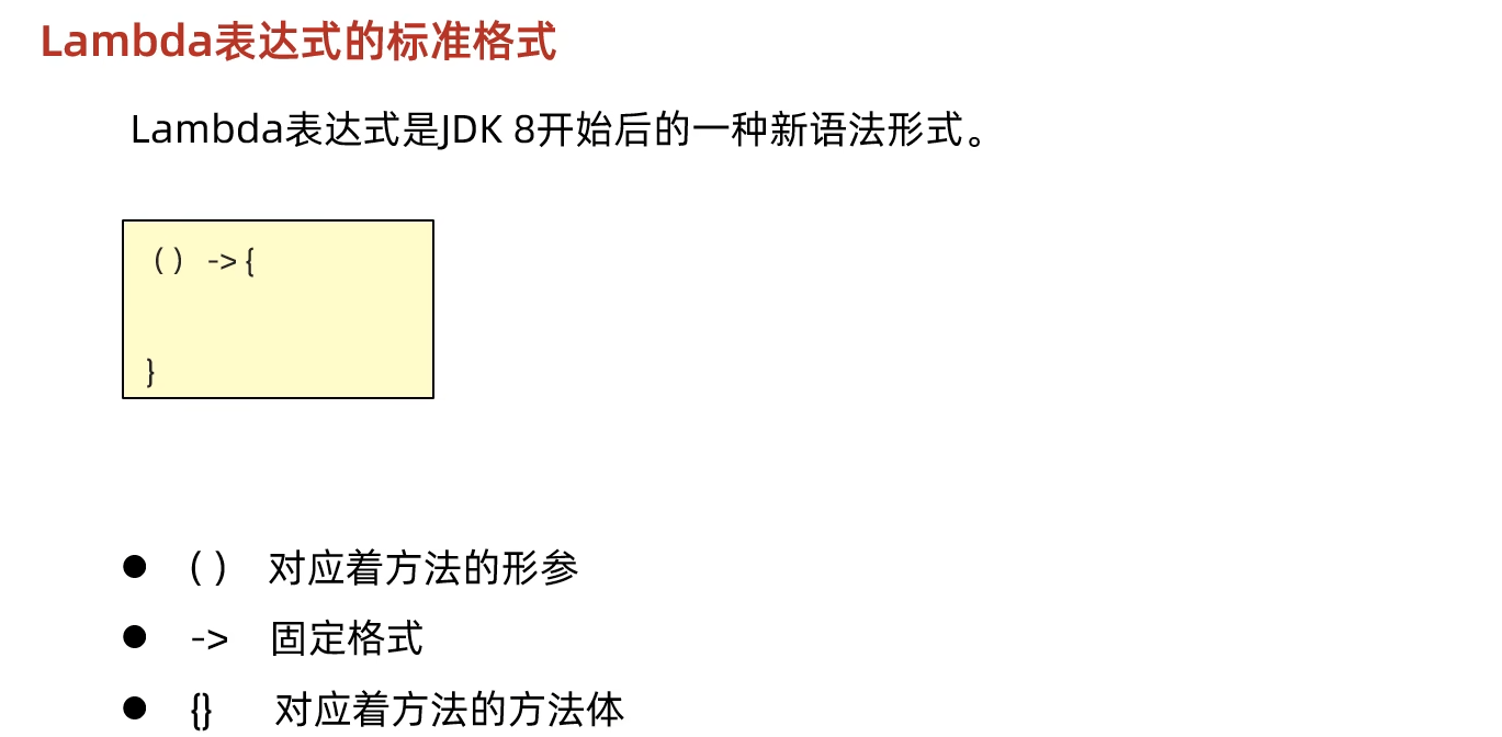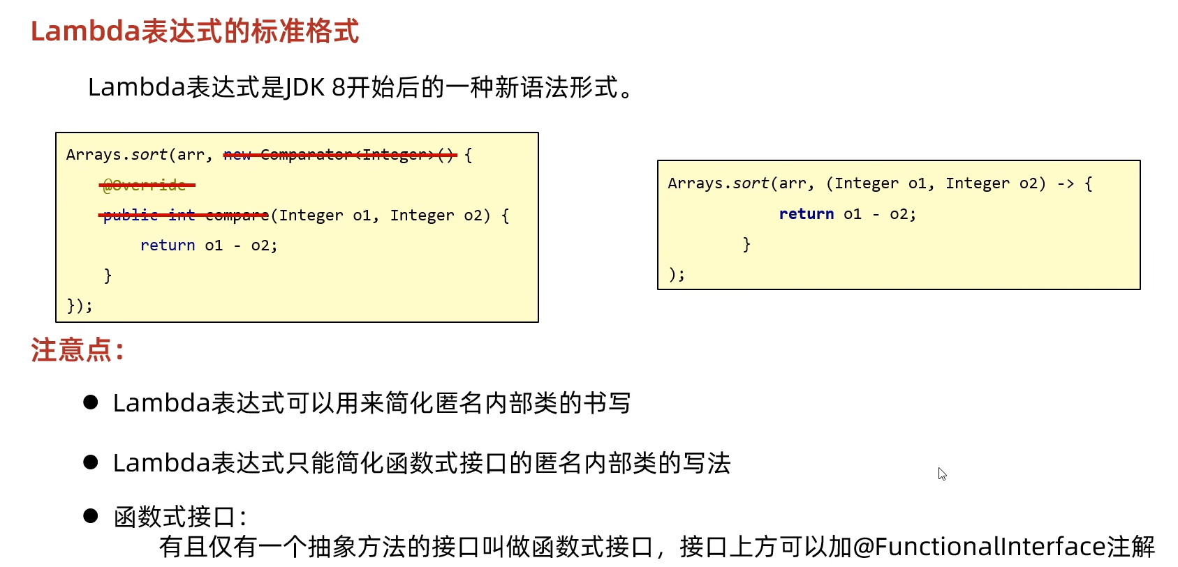3)实现的接口里面只能有一个函数。如何判断?在接口上面放@FunctionalInterface,不报错,就可以变成Lambda表达式。