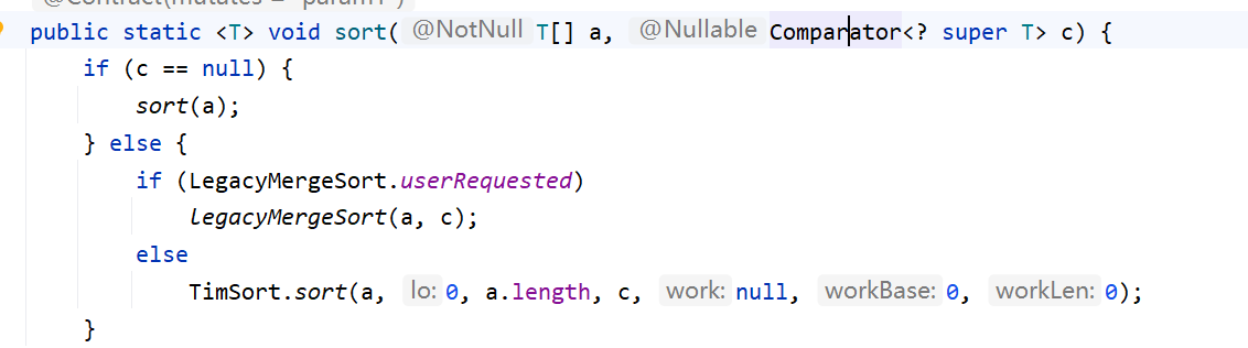 如何查看一个方法的参数是什么类型的?-------两个参数都填充,对 sort 进行 CTRL+B查看源码,发现sort的第二个参数是接口类型:::
