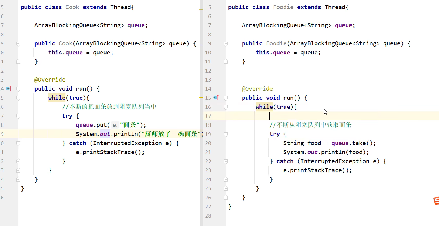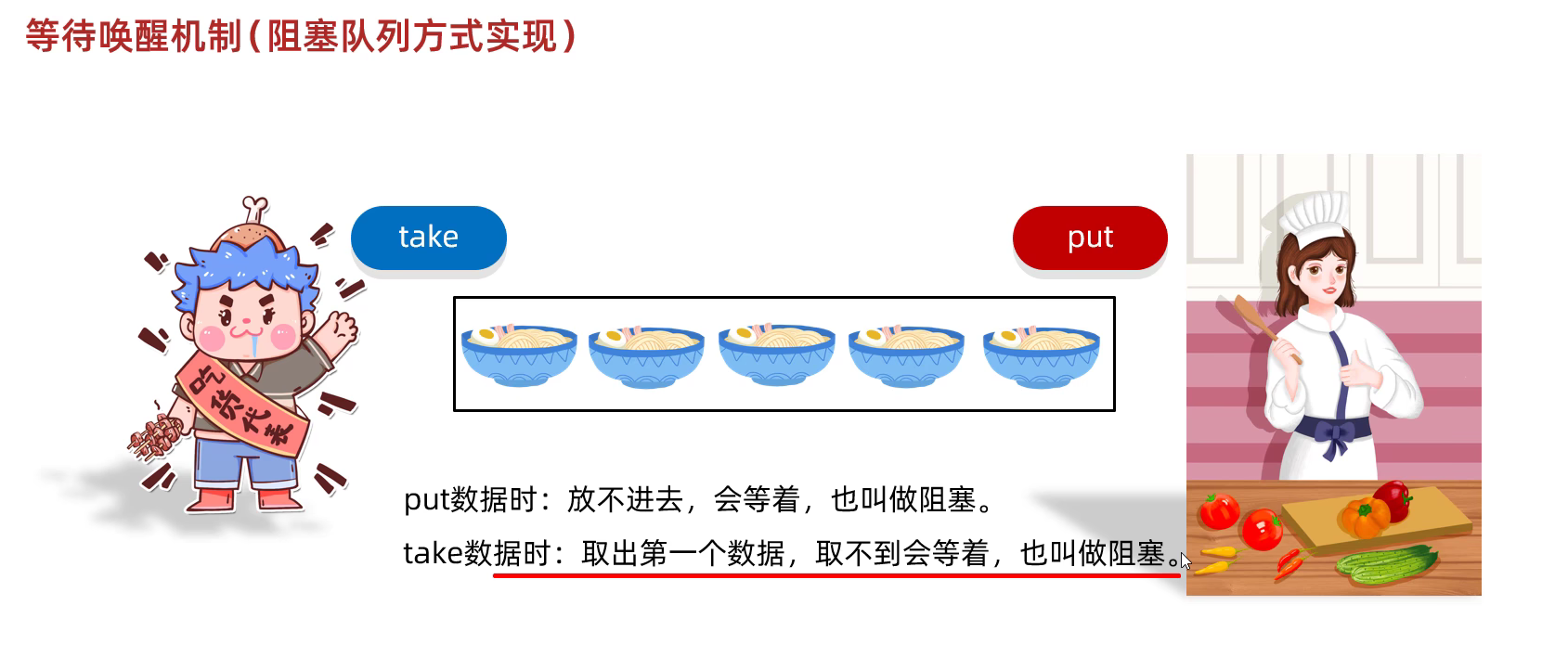 这里的queue的put方法和take方法不需要加锁,因为他们的底层都用了lock锁,我们无需再次加锁