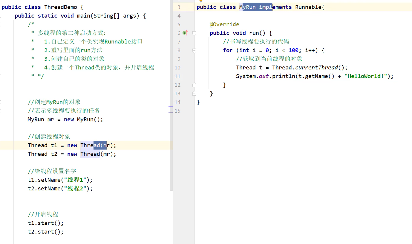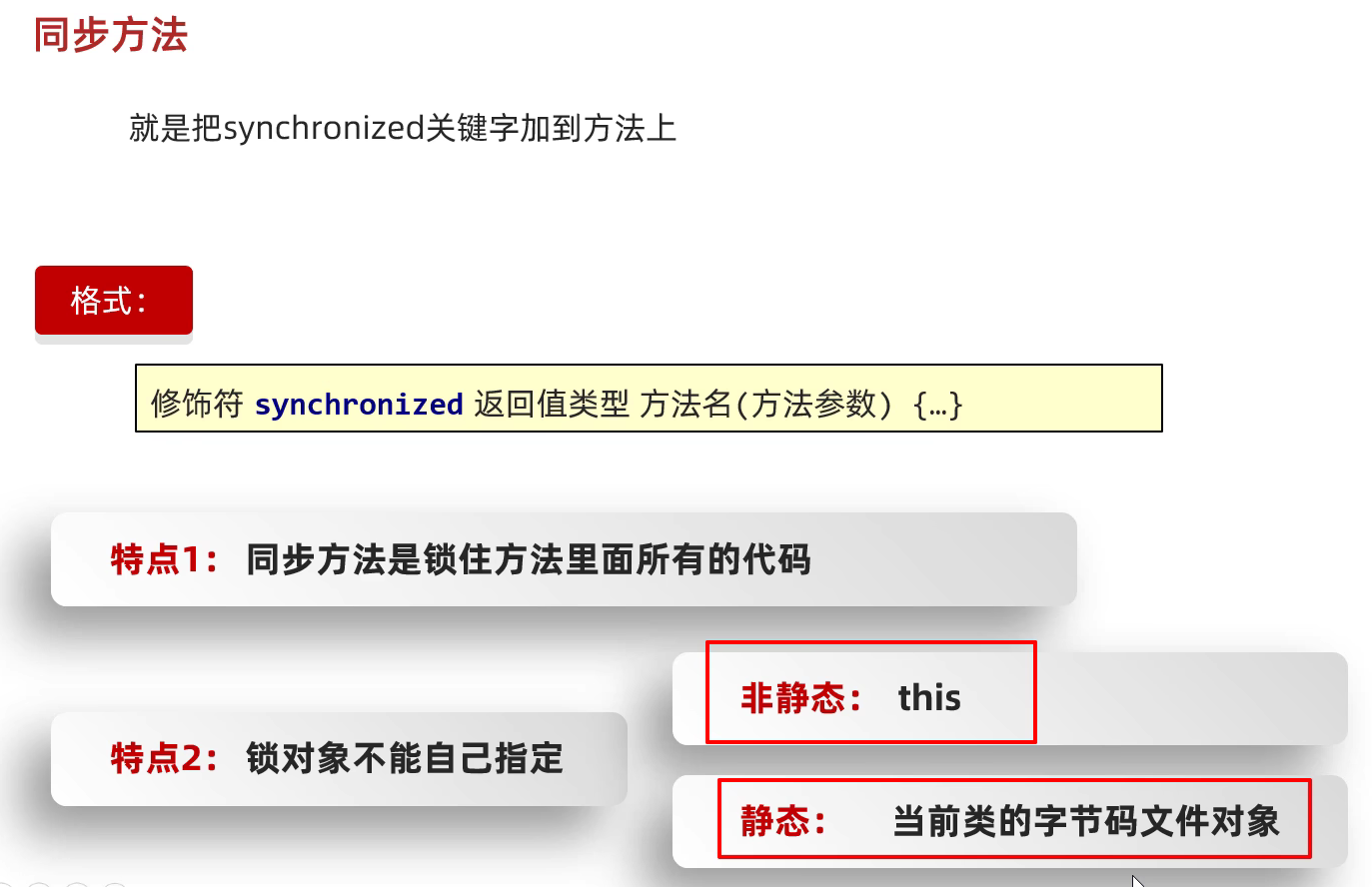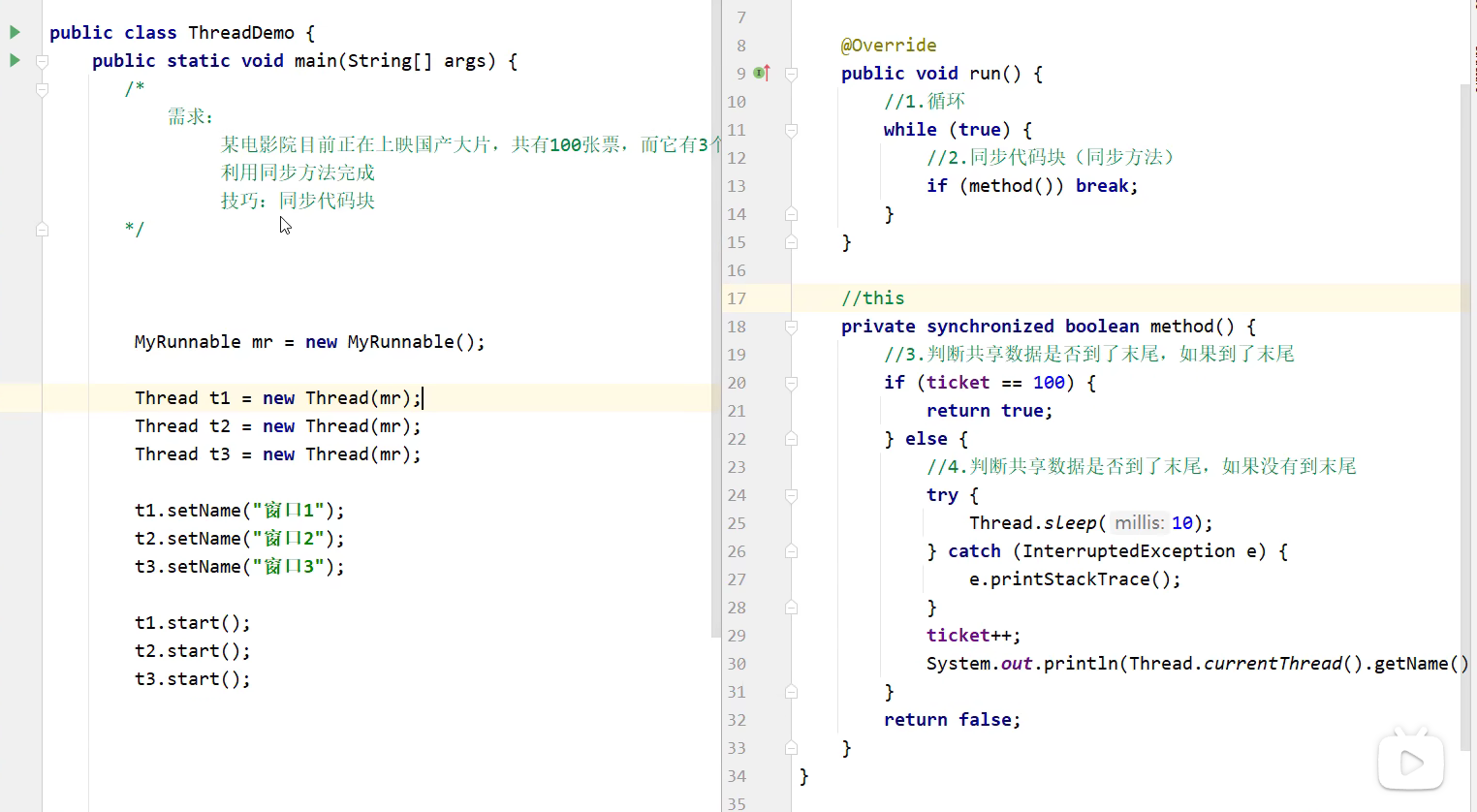 用后面的实现Runnable接口的,可以使用同步方法,因为锁对象默认是this。也就是左边的mr