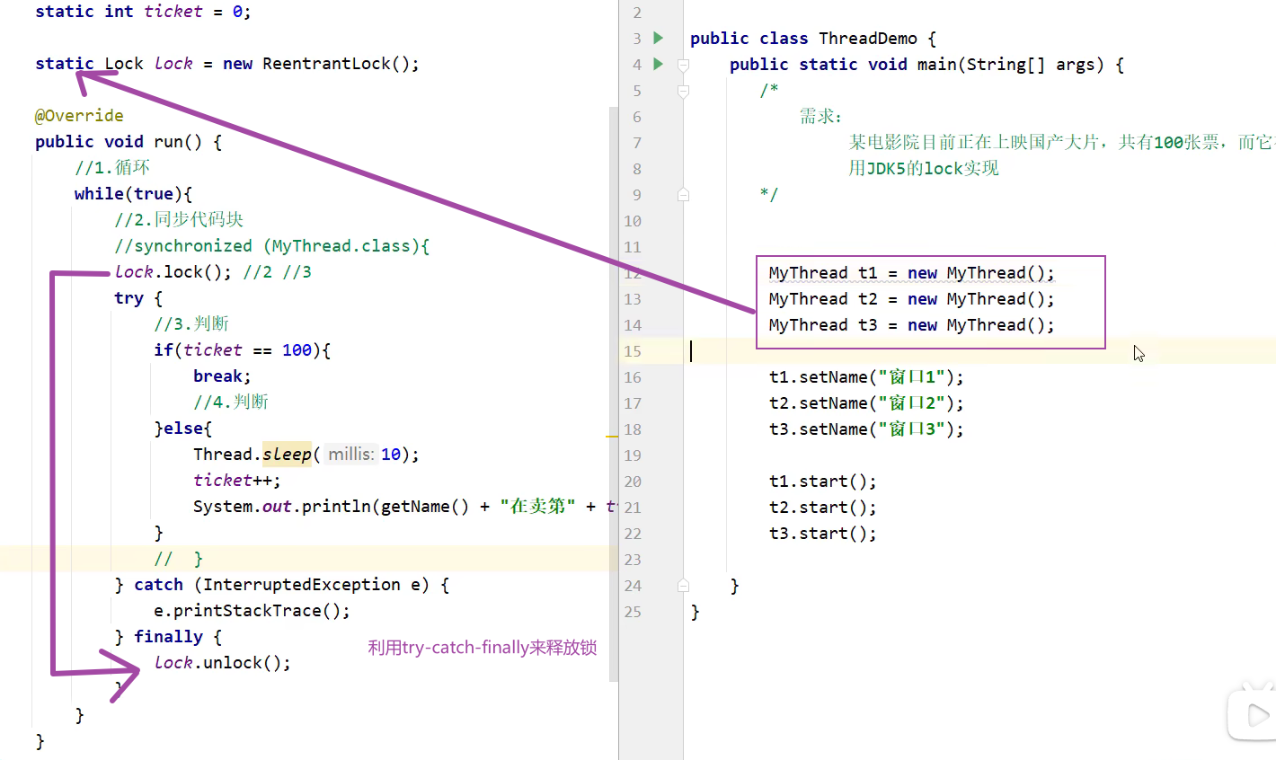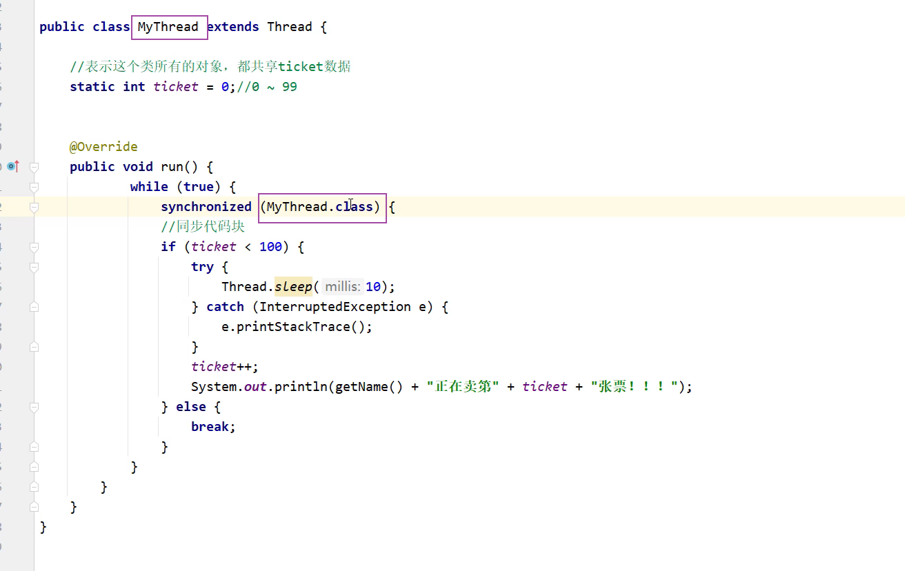 用方法以继承Thread使用同步代码块,自己指定锁对象