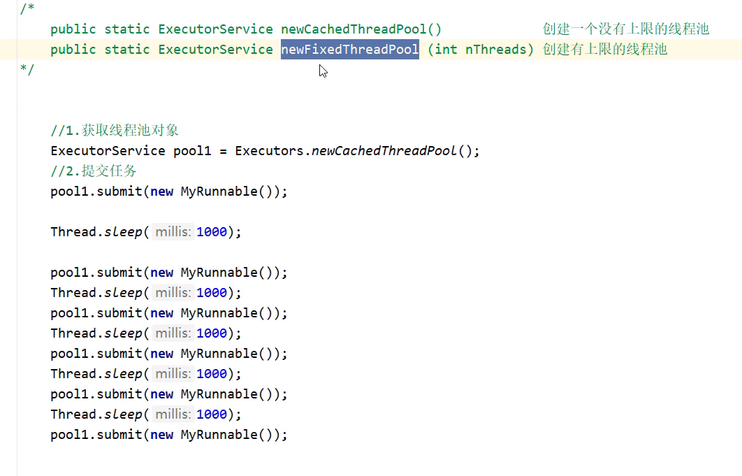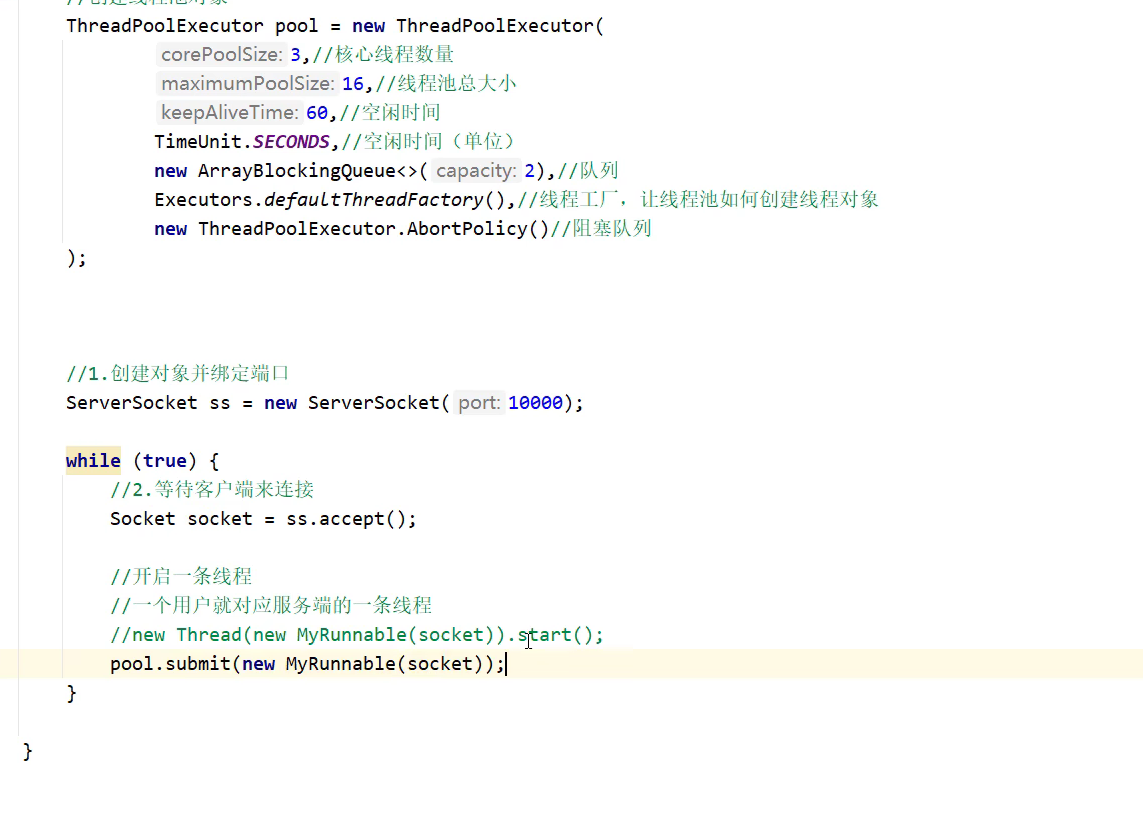 // new Thread(new ServerRunnable(socket, prop)).start();pool.submit(new ServerRunnable(socket, prop));}}