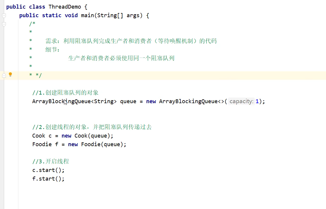 public class Test {public static void main(String[] args) {Producer producer = new Producer();Consumer consumer = new Consumer();producer.setName("生产者");consumer.setName("消费者");producer.start();consumer.start();}