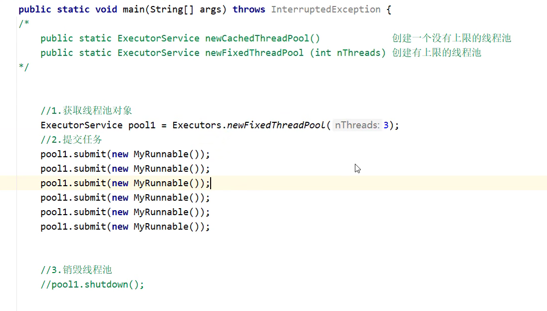 static ThreadPoolExecutor pool;static {pool = new ThreadPoolExecutor(3,6,60,TimeUnit.SECONDS,new ArrayBlockingQueue<>(3),Executors.defaultThreadFactory(),new ThreadPoolExecutor.AbortPolicy());}public static void main(String[] args) throws IOException {Socket socket = new Socket("127.0.0.1",65535);