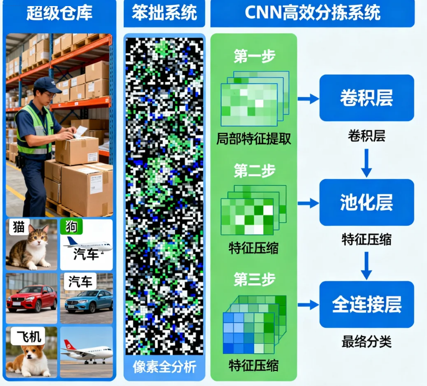核心比喻:CNN就是一个高效的“快递分拣系统”
