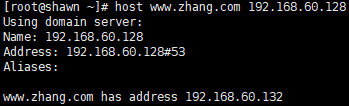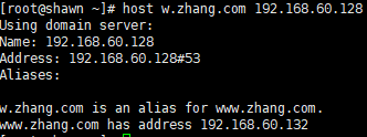[root@shawn ~]# host w.zhang.com 192.168.60.128