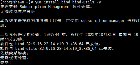 yum install bind bind-utils -y # bind 是服务器端,bind-utils 是查询工具(dig/nslookup)