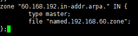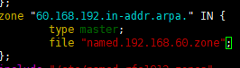 zone "60.168.192.in-addr.arpa." IN {type master;file "named.192.168.60.zone";