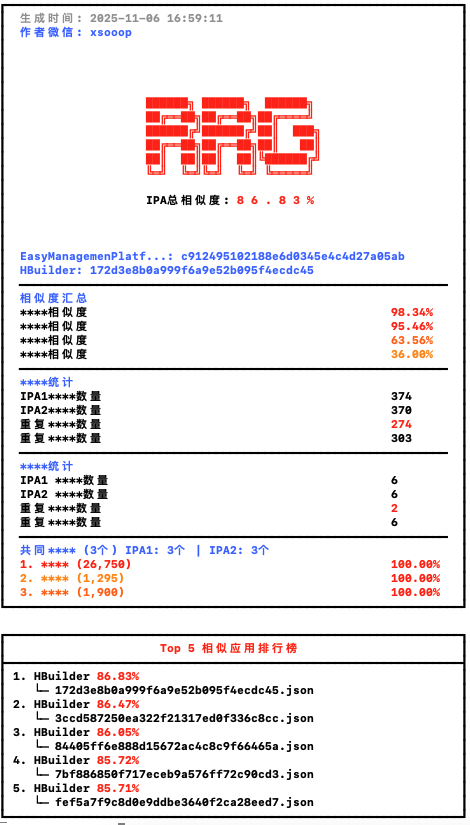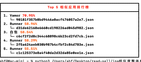 这些流程我再其他文章已经多次讲解过, 但是我今天想要突出的问题是. 这些特征文件都是已上架的app的特征, 你每次提交ipa后, 和这些已上架的app的特征对比, 如果出现高相似度应用, 机审会逐一列出,