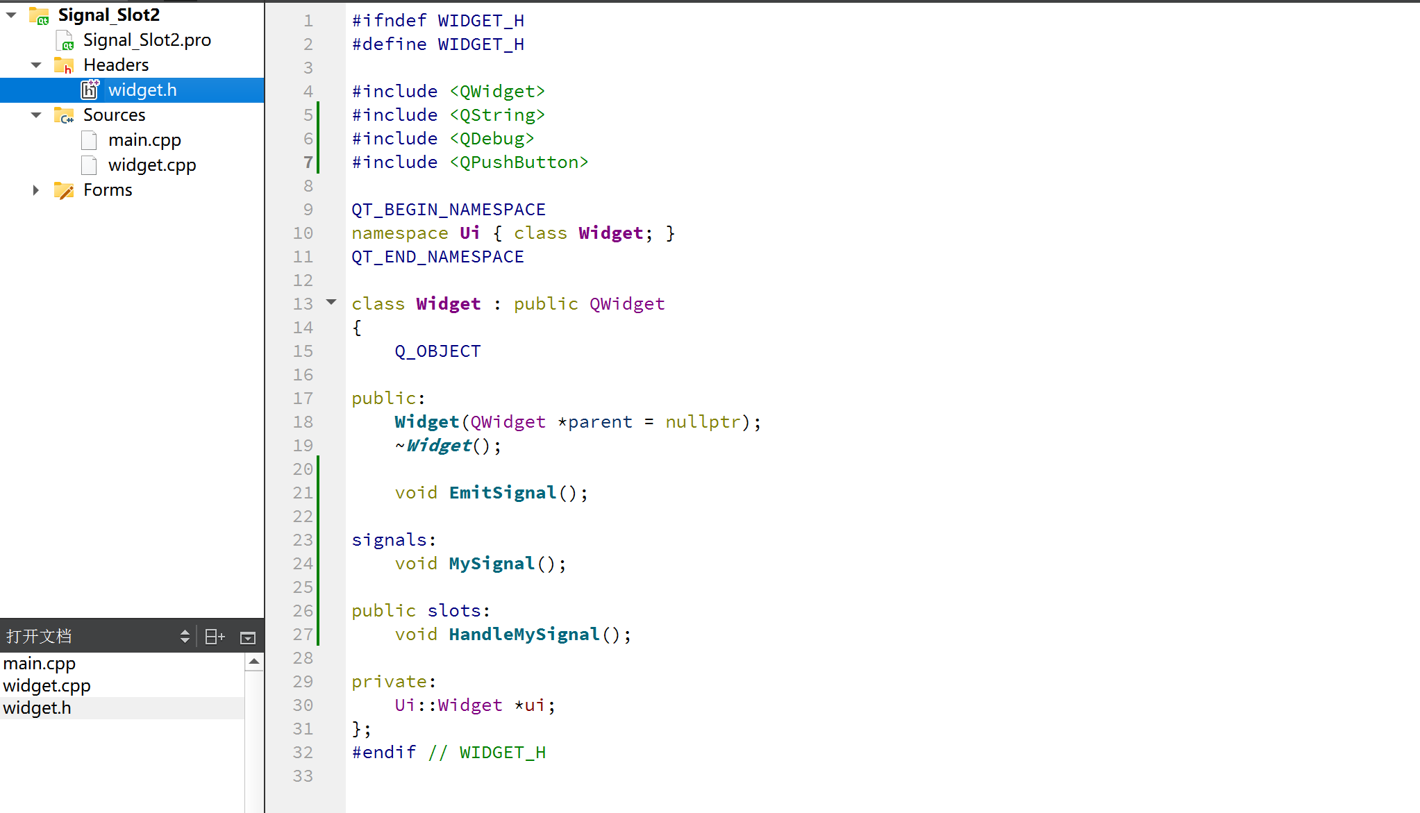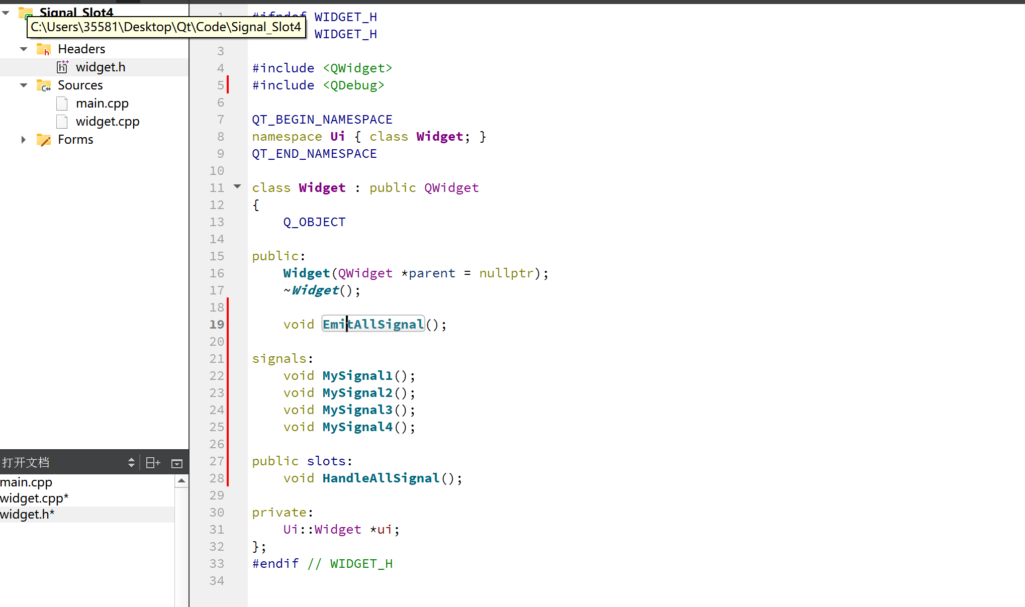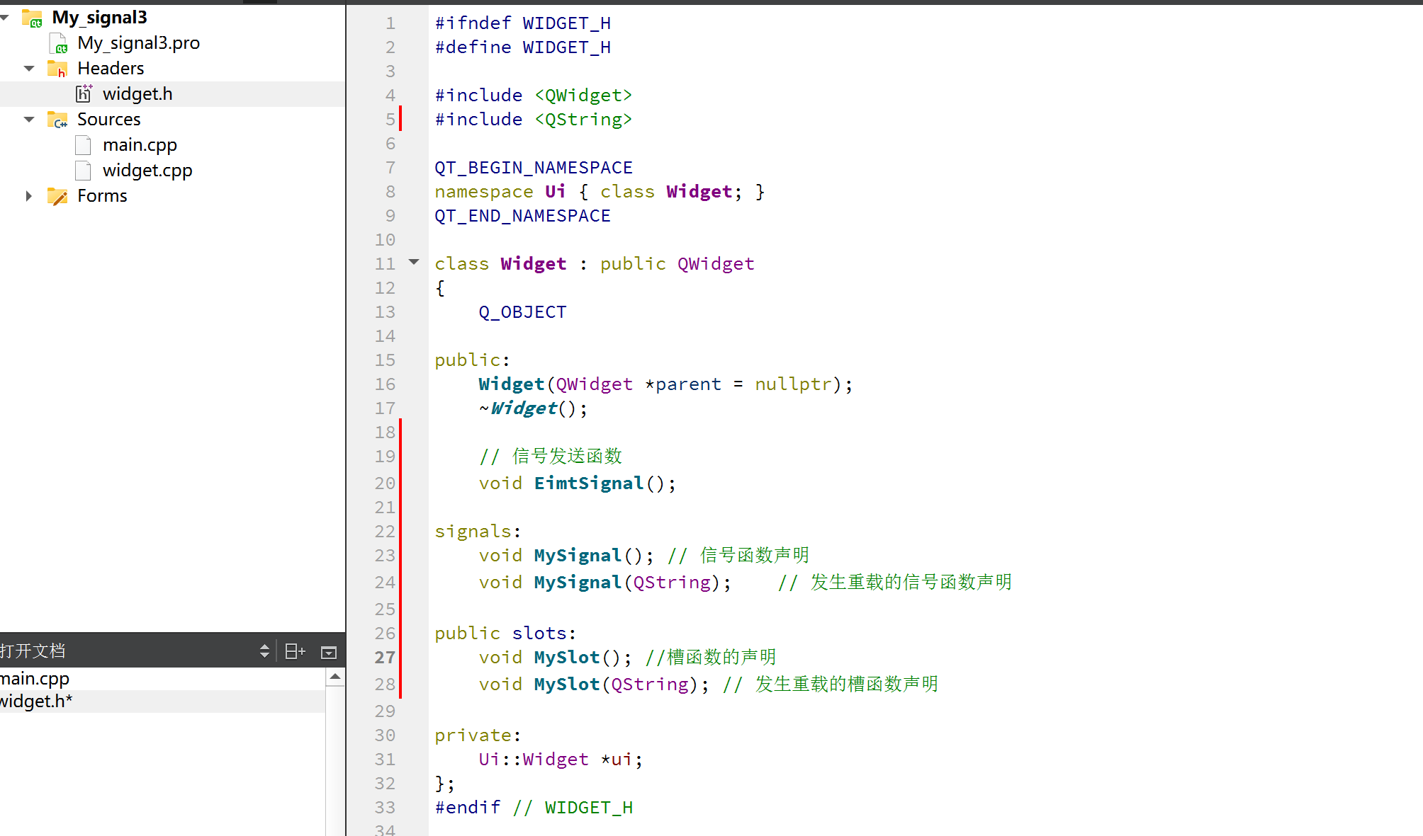 1.2.1. 先在widget.h中声明自定义函数和槽函数