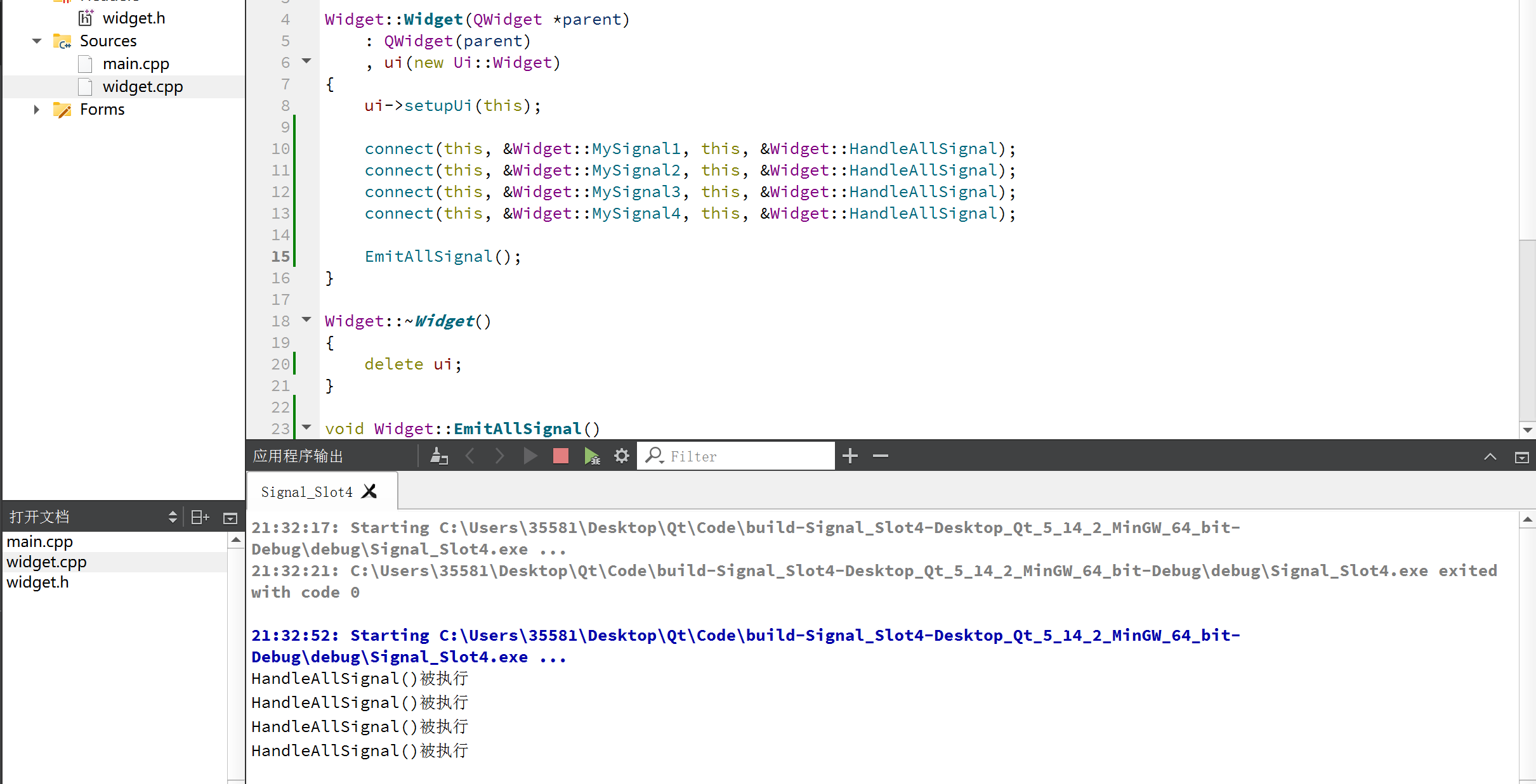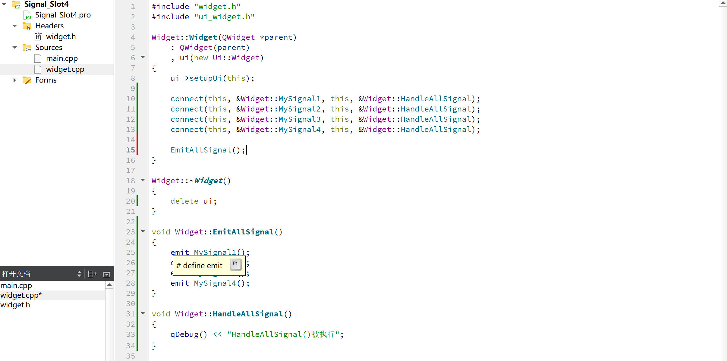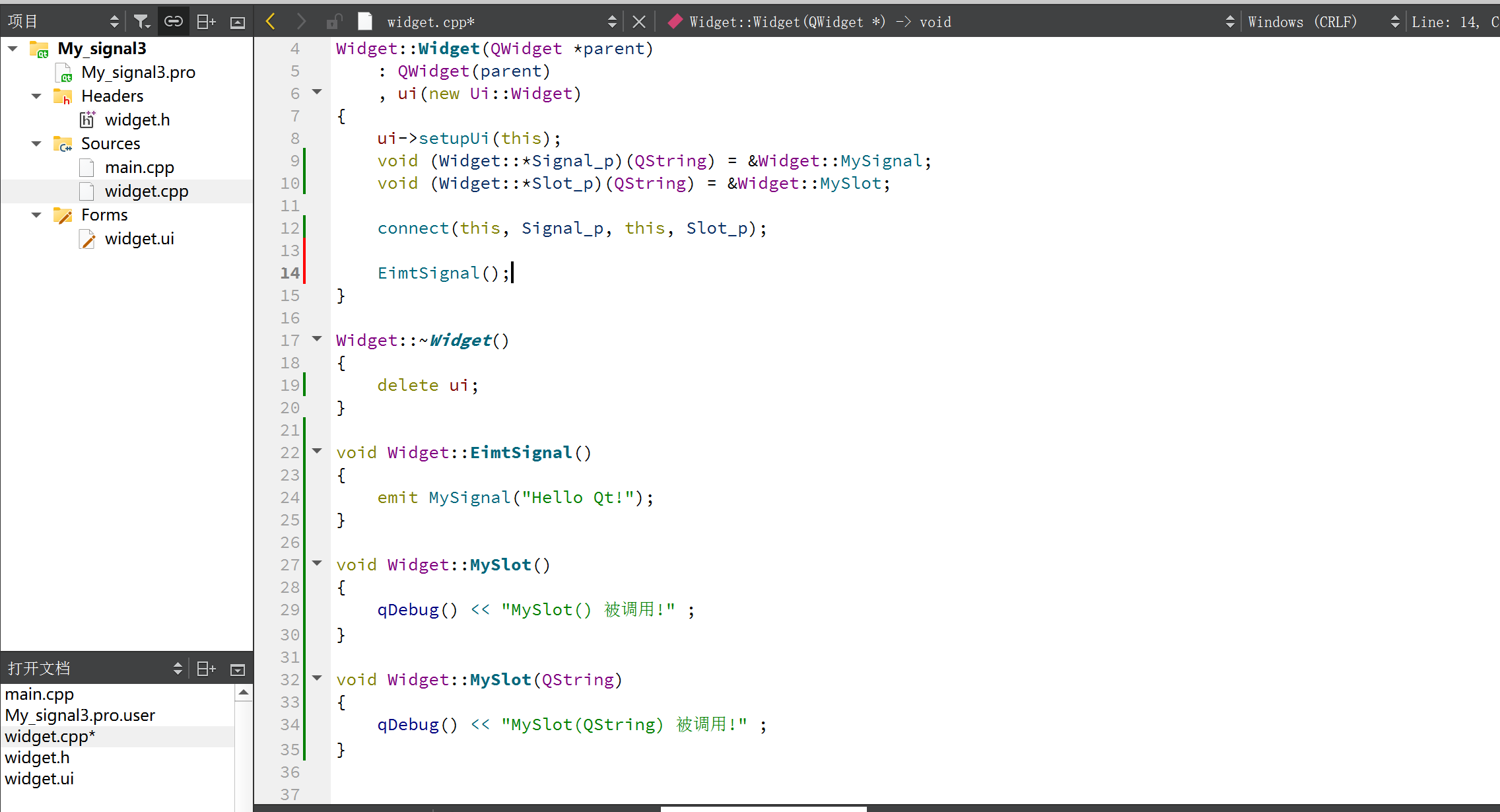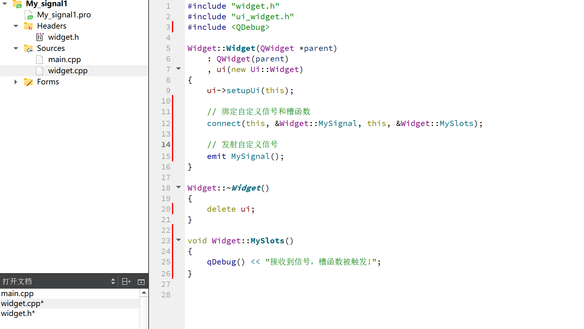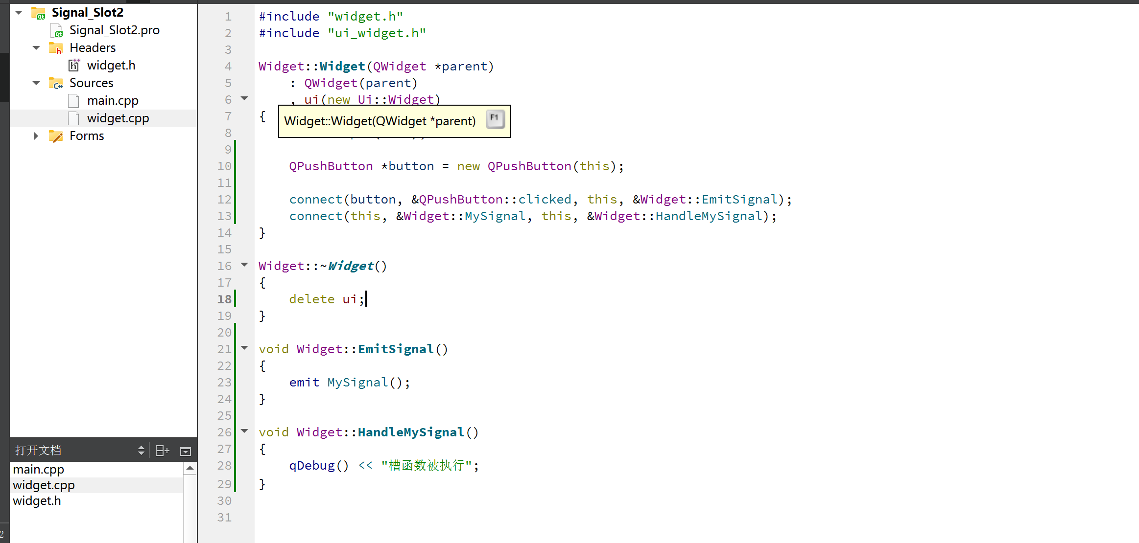 1.2.2. 在widget.cpp中实现自定义的槽函数