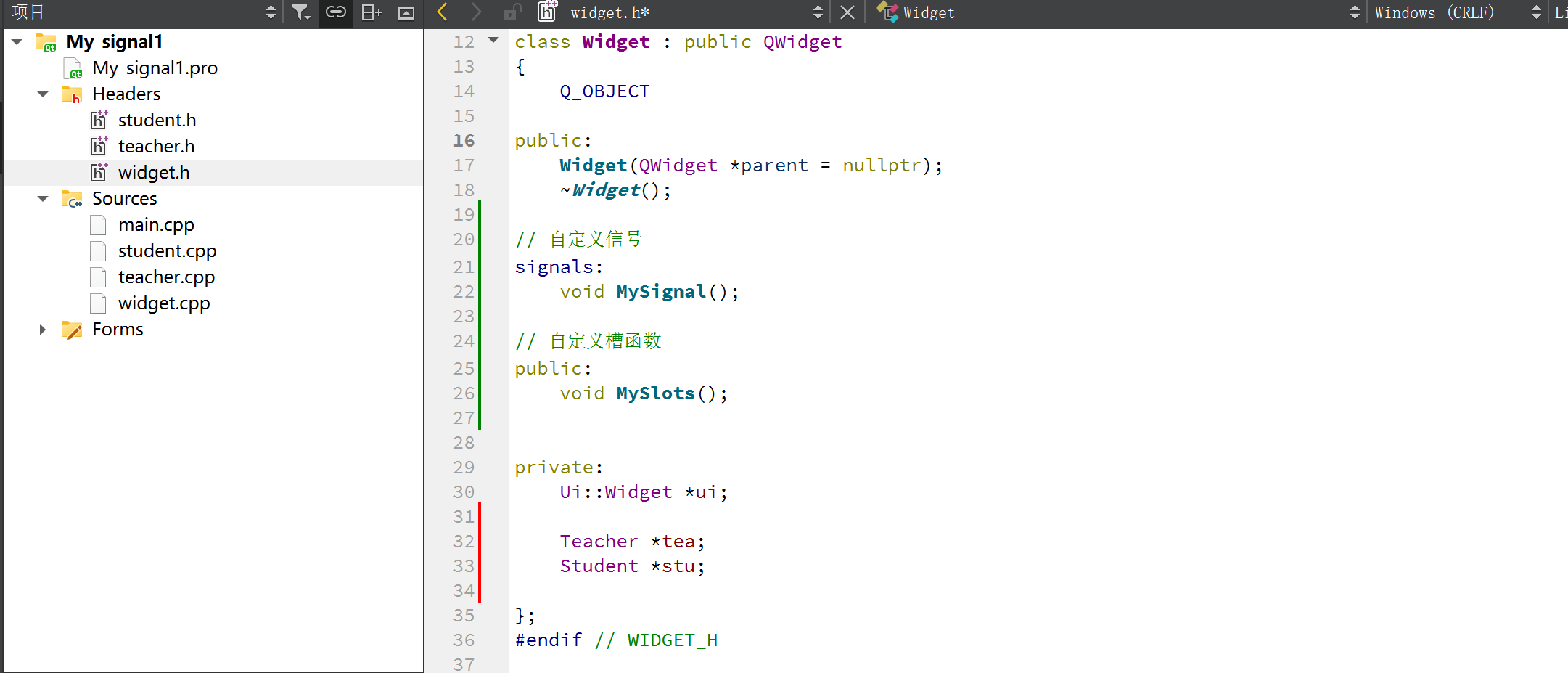1.3.4. 在 widget.h 中实例化 "⽼师类对象" 和 "学⽣类对象"