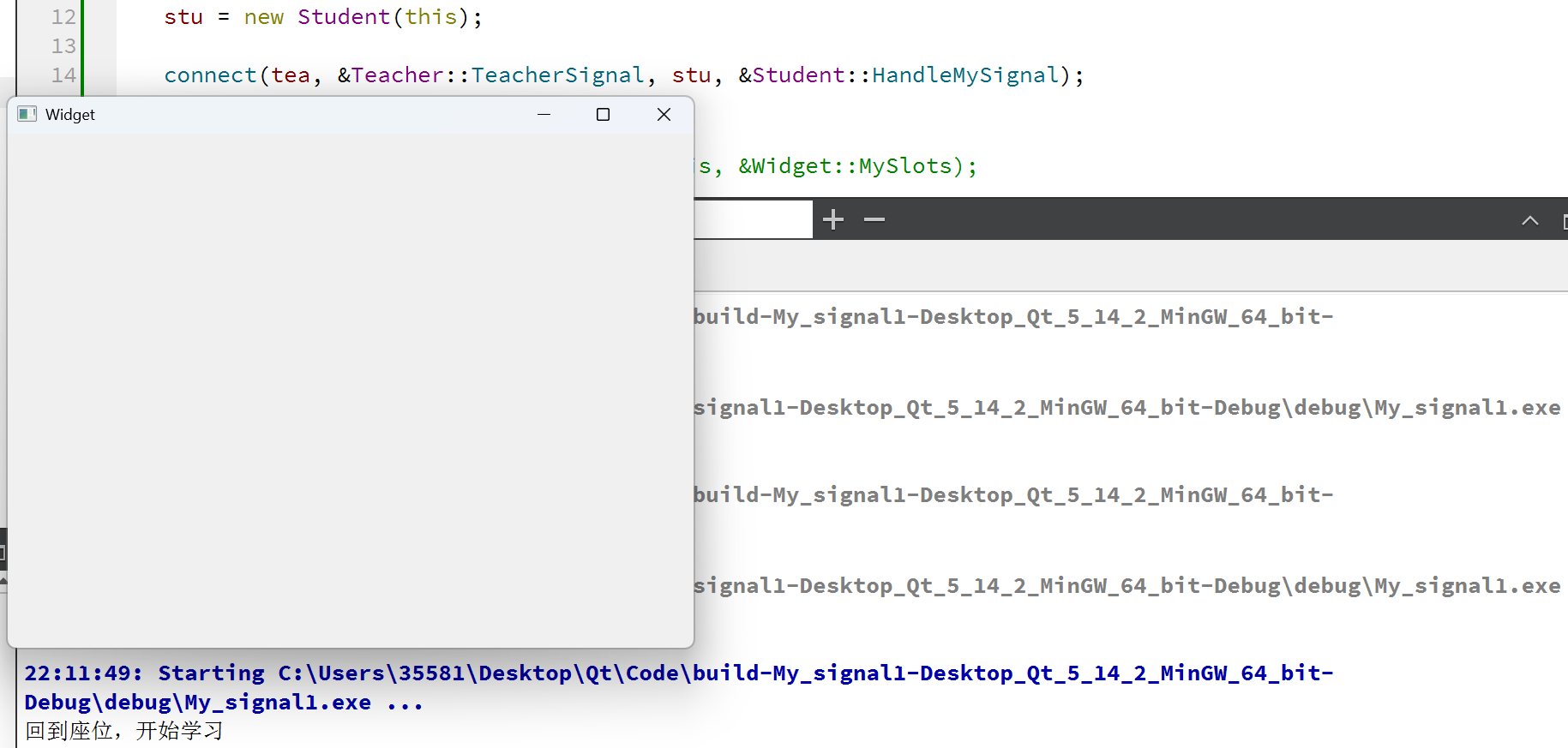 1.3.6. 在 widget.cpp 中连接⾃定义信号和槽