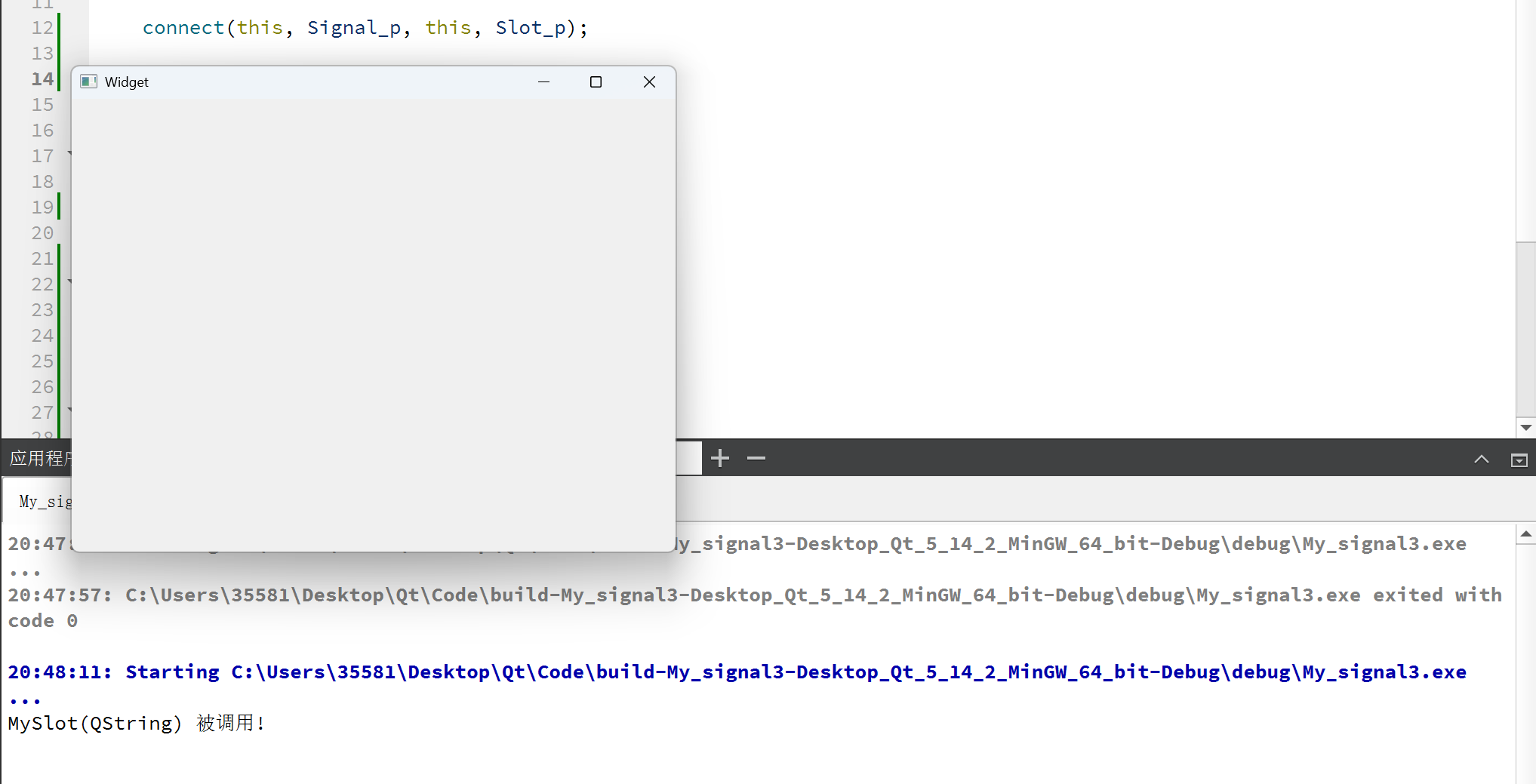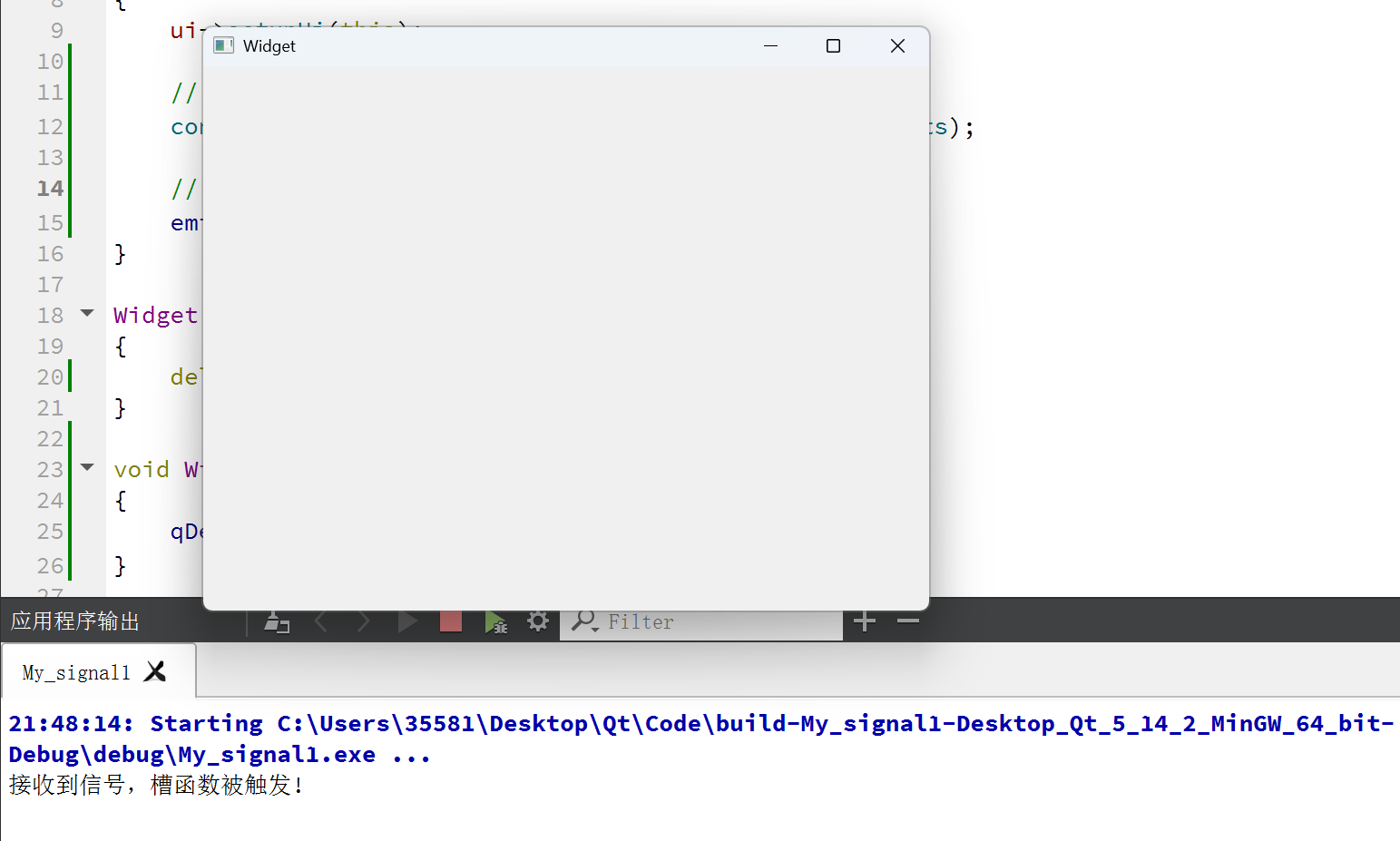2.3.2. 在 "Widget.cpp" ⽂件实现重载槽函数以及连接信号和槽