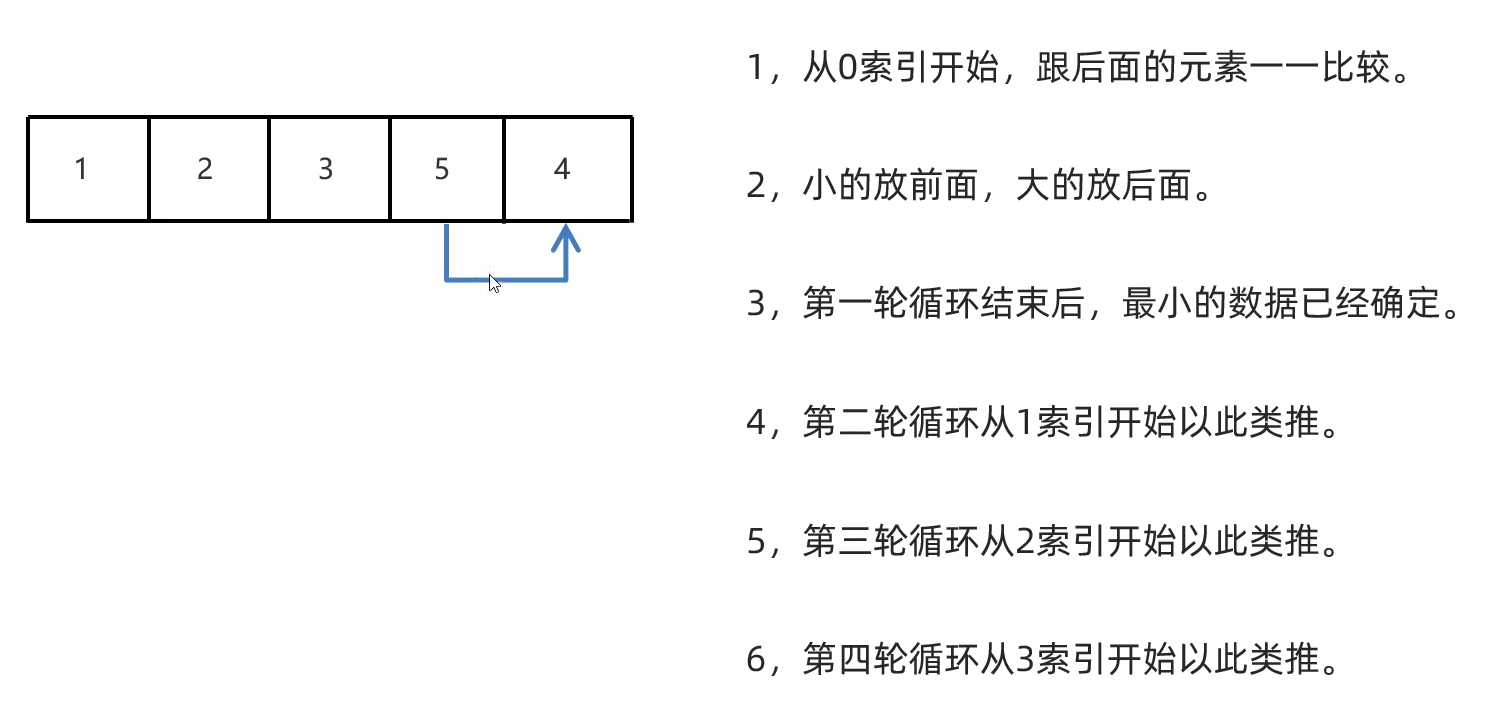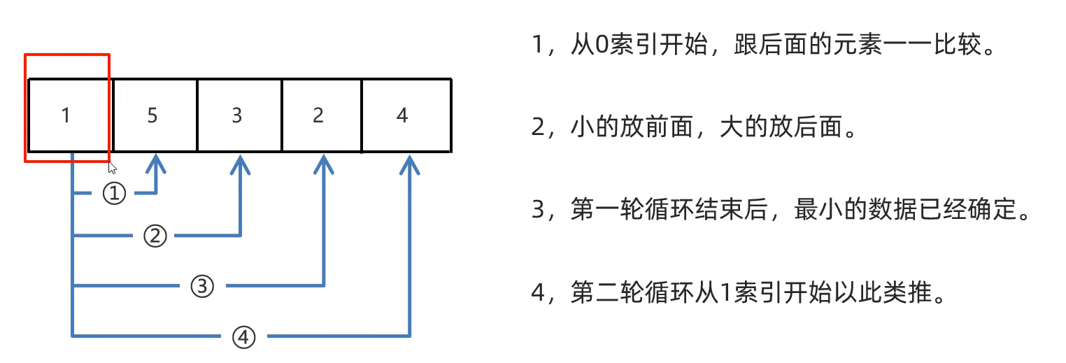 package com.sort;public class SelectSearch {public static void main(String[] args) {int []arr={1,5,8,2,10,4};for (int i = 0; i < arr.length-1; i++) {for (int j = i+1 ; j < arr.length; j++) {if(arr[i]>arr[j]){int tmp=arr[i];arr[i]=arr[j];arr[j]=tmp;}}}printARR(arr);}public static void printARR(int []arr){for (int i = 0; i < arr.length; i++) {System.out.print(arr[i]+" ");}}