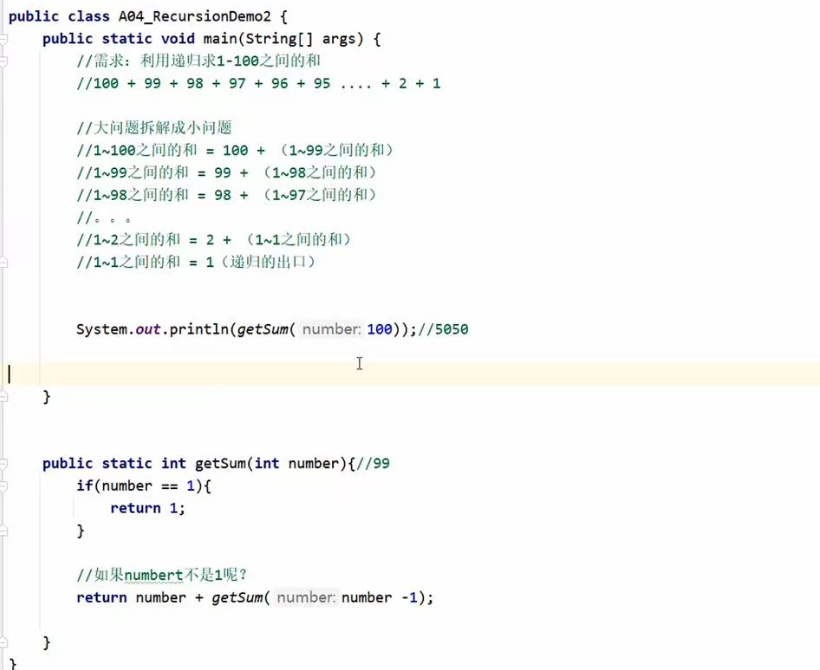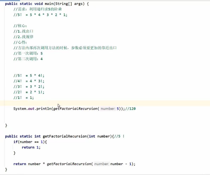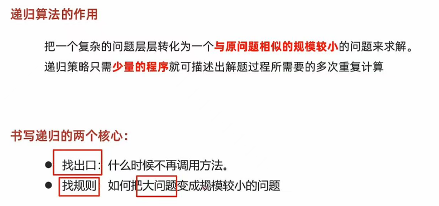 先知道递归函数的方法体是什么,重复的部分就是方法体,之后再找出口,写在方法体中。