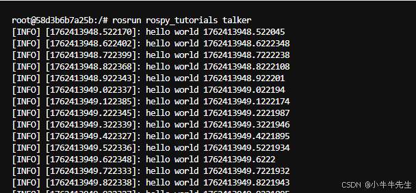 source ~/.bashrc如果报类似的错误:root@58d3b6b7a25b:/# rosrun rospy_tutorials talker