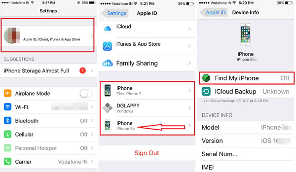 - 选择“退出登录”选项,输入你的Apple ID密码,并停用“查找我的iPhone”功能。