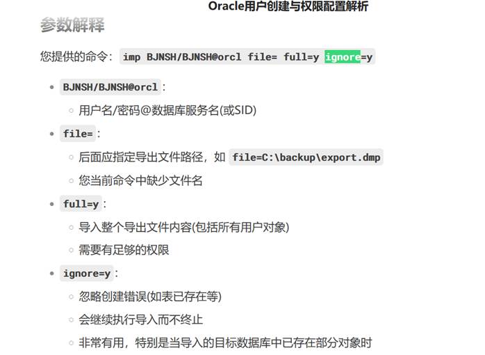 imp ZYYH20250430/ZYYH20250430@orcl file=D:\zyyhpms.dmp full=y ignore=y