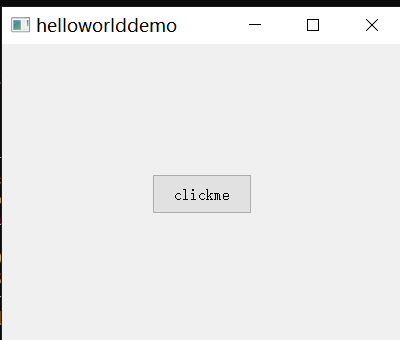 from PyQt5.QtCore import Qtclass MainWindow(QWidget):def __init__(self):super().__init__()self.initUI()def initUI(self):# 设置窗口标题self.setWindowTitle('helloworlddemo')# 设置窗口大小self.resize(400, 300)# 创建布局layout = QVBoxLayout()# 创建按钮self.button = QPushButton('clickme')self.button.setFixedSize(100, 40)# 连接按钮的点击信号到槽函数self.button.clicked.connect(self.showMessage)# 将按钮添加到布局中并居中layout.addStretch(1) # 上面的弹性空间layout.addWidget(self.button, 0, Qt.AlignCenter)layout.addStretch(1) # 下面的弹性空间# 设置布局self.setLayout(layout)def showMessage(self):# 显示消息框QMessageBox.information(self, 'Message', 'I am pyqt5 demo')if __name__ == '__main__':app = QApplication(sys.argv)window = MainWindow()window.show()sys.exit(app.exec_())效果: