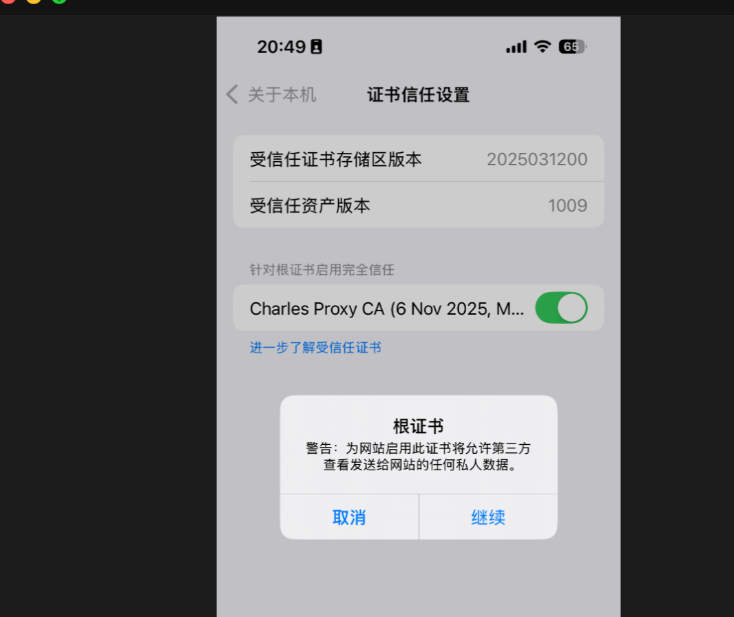 - 不校验证书合法性:当手机安装了 Charles 等工具的根证书后,App 会默认信任该证书,允许 HTTPS 流量被解密,抓包工具能直接解析内容。