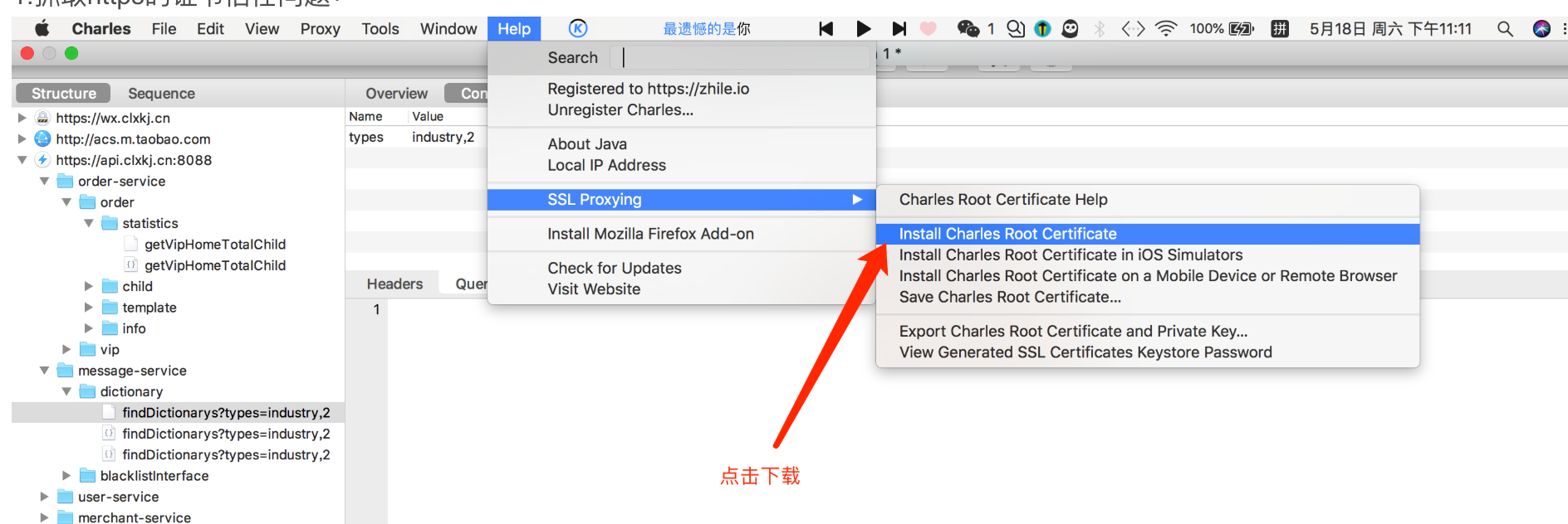 成功激活后,按照下图指引点击安装证书,奈何钥匙串中怎么搜不到添加的这个证书,无奈只能去官网下了最新的5.03版本,点击下载mac版本,最新版本点击这个install后又能找到,这里如果碰到坑的小伙伴,建议反复试一下,我是老版本新版本翻来覆去的卸载安装了好多遍才安装上的,记得时不时重启下Charles与钥匙串。