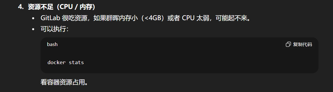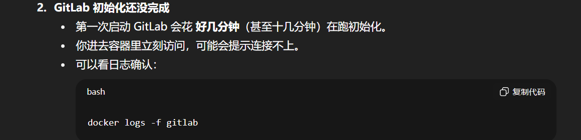 想问一下我使用群辉运行了gitlab docker打开终端机后是显示无法连接gitlab