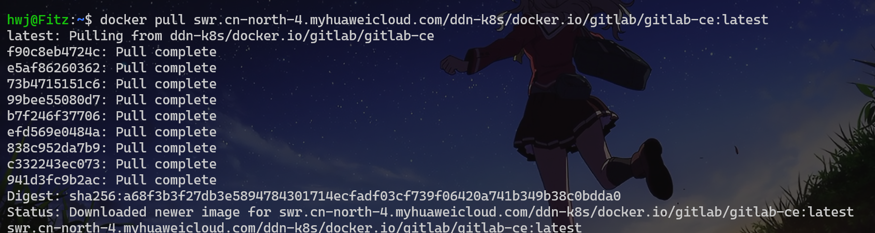 docker pull swr.cn-north-4.myhuaweicloud.com/ddn-k8s/docker.io/gitlab/gitlab-ce:latest