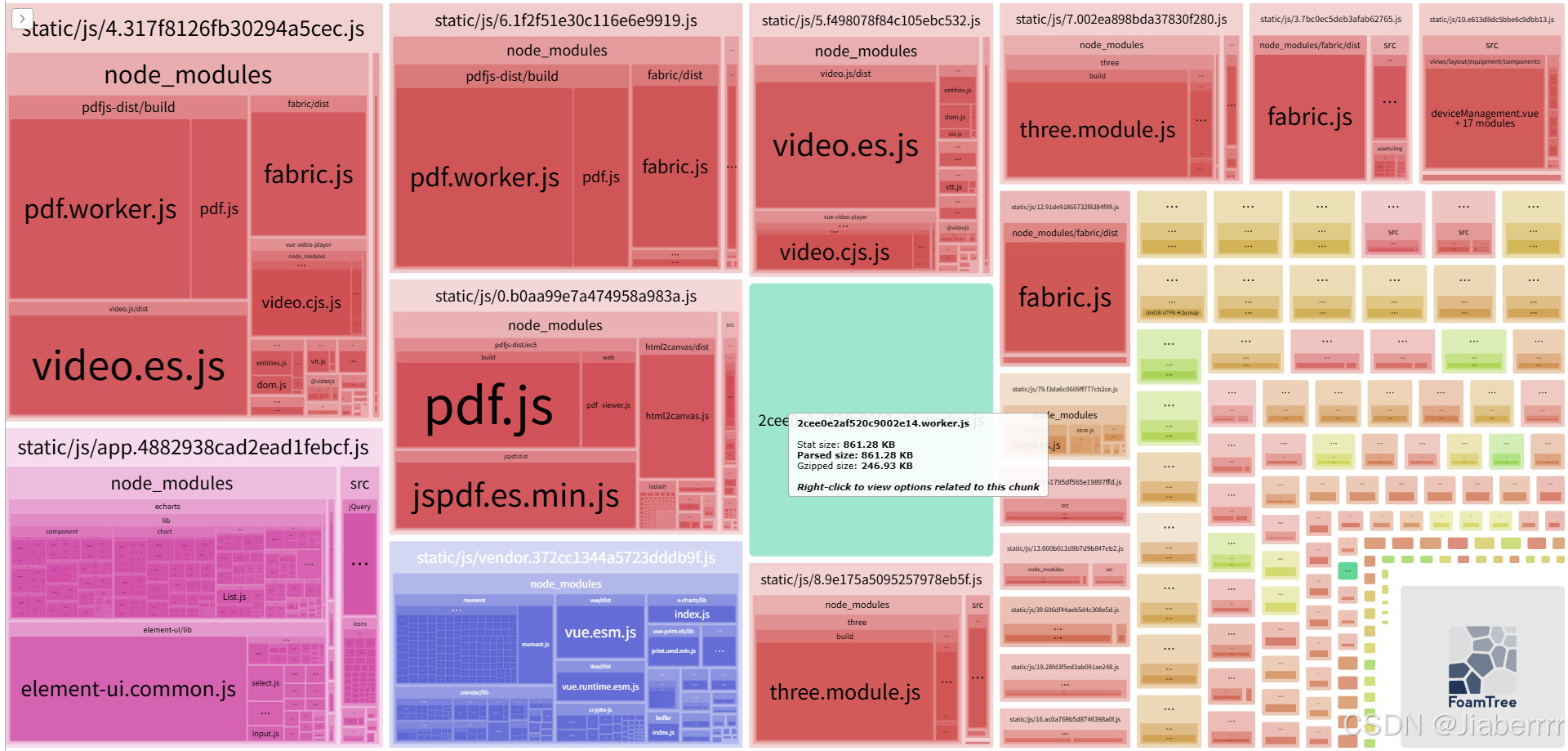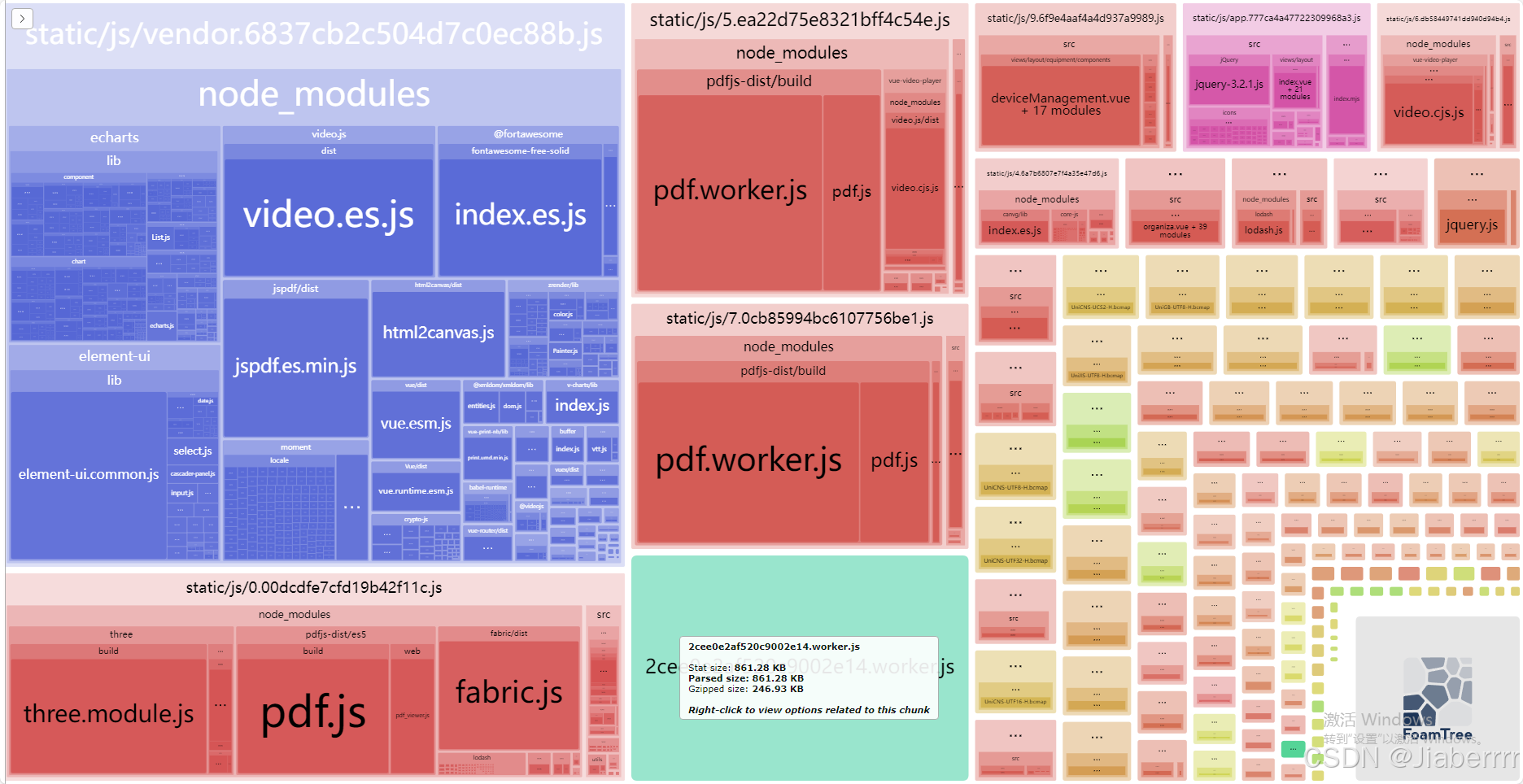 打开生成的分析报告后,我发现有几个依赖包所占的体积比例较大,分别是: