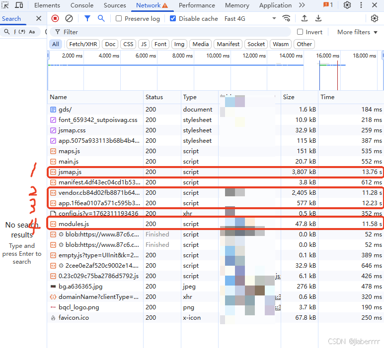 首先对 jsmap.js 和 modules.js 进行排查,通过查看项目的路由配置、组件引入代码以及相关的业务逻辑文件,我发现这两个文件并非在项目的所有页面中都有使用,而仅仅是在特定的几个页面(如数据统计页面、复杂表单页面)中才会用到。