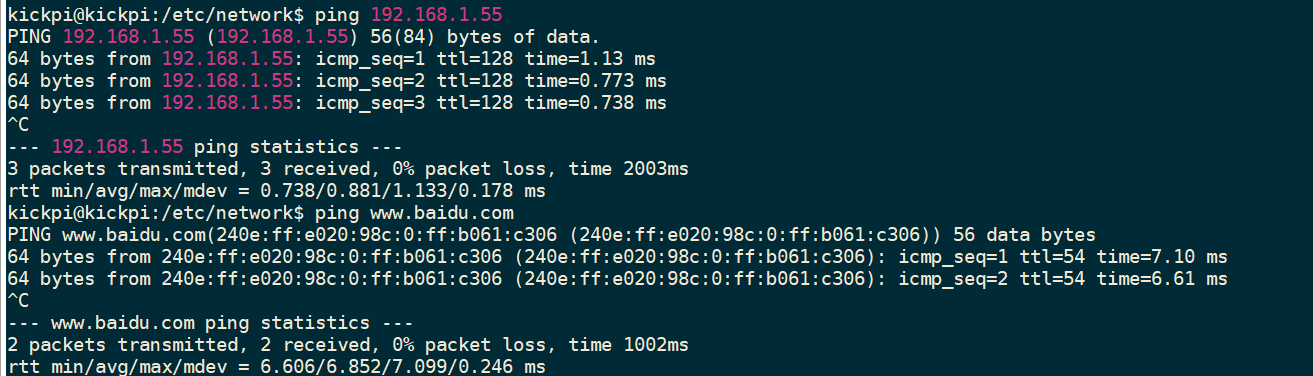 能正常ping通局域网也能ping通外网,说明我们配置成功。