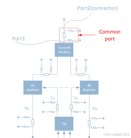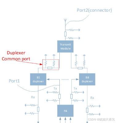 在一个手机射频电路中,有不同的频段(band),因此公共端的调试也要兼容不同的band,让信号都能够以较小的差损来传输。