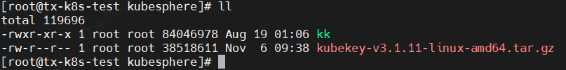 wget https://github.com/kubesphere/kubekey/releases/download/v3.1.11/kubekey-v3.1.11-linux-amd64.tar.gz然后上传文件kubekey-v3.1.11-linux-amd64.tar.gz到待部署k8s节点后解压