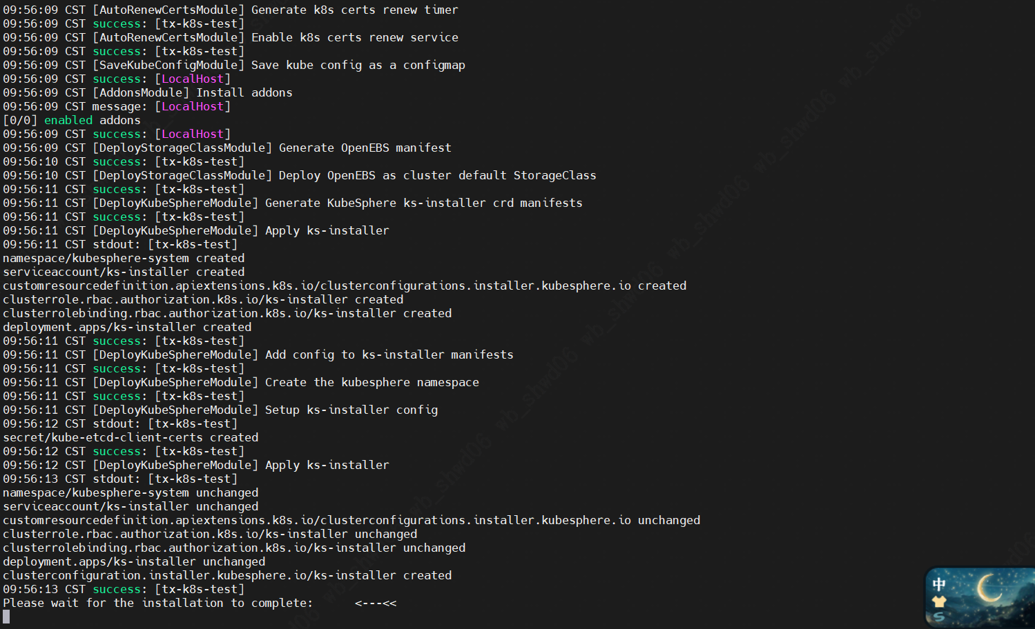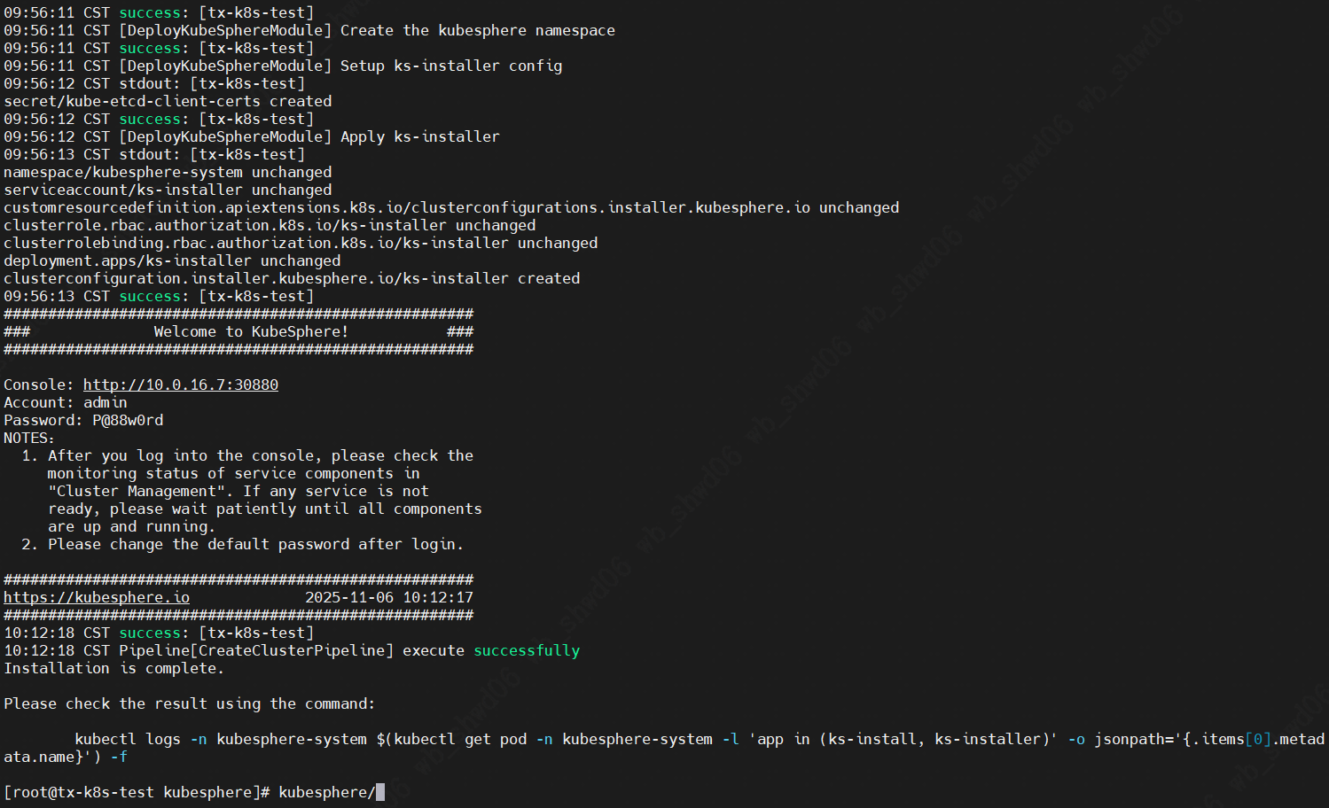./kk create cluster --with-kubernetes v1.23.6 --with-kubesphere v3.4.1