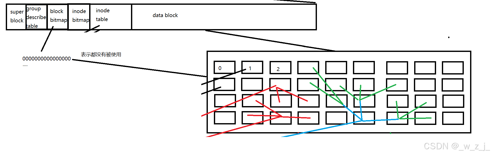 存放文件系统本身的结构信息。记录的信息主要有:bolck 和 inode的总量,未使用的block和inode的数量,一个block和inode的大小,最近一次挂载的时间,最近一次写入数据的时间,最近一次检验磁盘的时间等其他文件系统的相关信息。Super Block的信息被破坏,可以说整个文件系统结构就被破坏了。所以其被不规则地分散在group中。