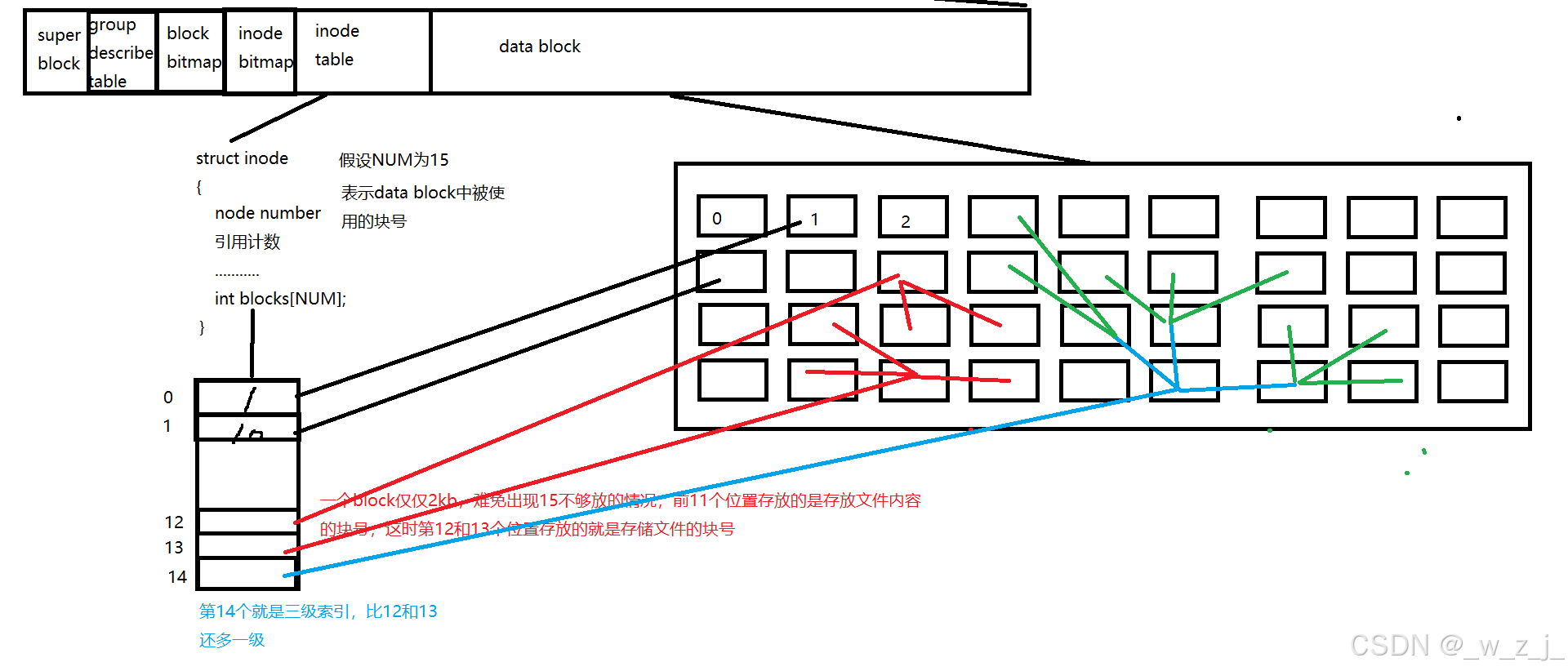 而inode也类似,不过inode一般为128个字节的结构体,所以一块block可以包含2KB➗128B个inode。