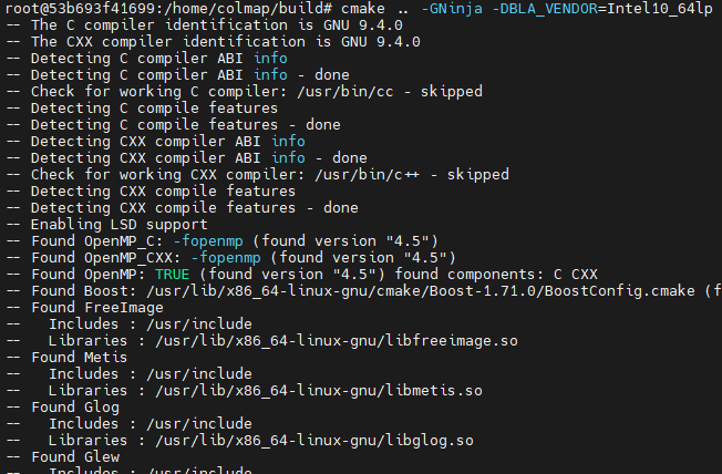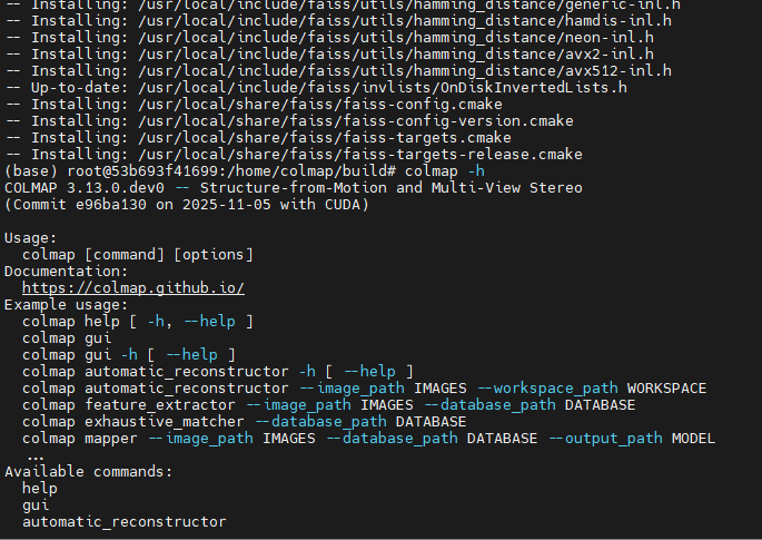 通过apt install的已编译的版本方式也可以成功安装,但是不支持GPU加速。导致特征点匹配的速度非常慢。在本地机器测试,960*540分辨率上的特征点匹配需要3s钟。使用GPU加速可以减少1到2个数量级。