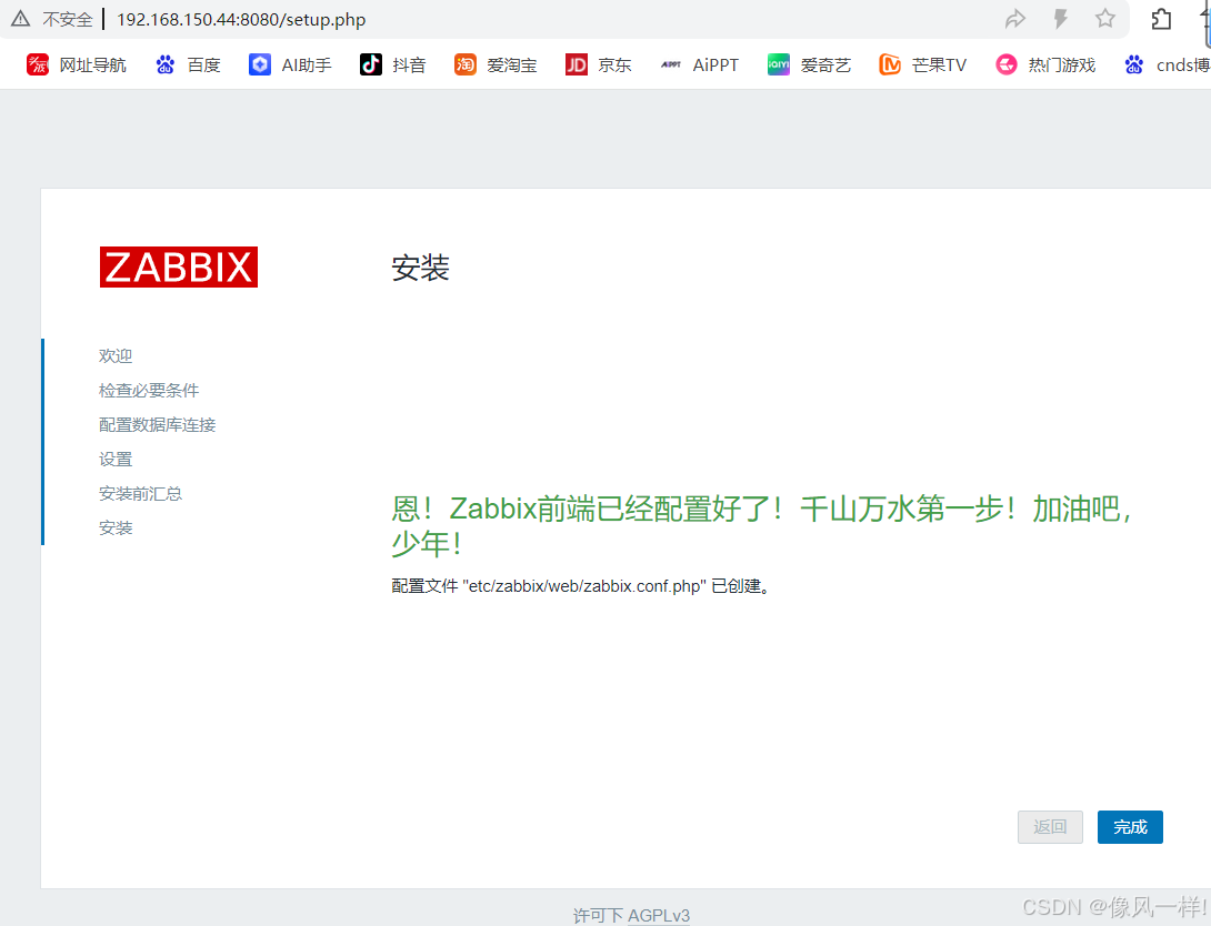 已安装:OpenIPMI-libs-2.0.36-1.el9.x86_64 fping-5.1-1.el9.x86_64 httpd-filesystem-2.4.62-4.el9_6.4.noarch mariadb-connector-c-3.2.6-1.el9_0.x86_64 mariadb-connector-c-config-3.2.6-1.el9_0.noarch nginx-2:1.20.1-22.el9_6.3.x86_64 nginx-core-2:1.20.1-22.el9_6.3.x86_64 nginx-filesystem-2:1.20.1-22.el9_6.3.noarch php-bcmath-8.0.30-3.el9_6.x86_64 php-common-8.0.30-3.el9_6.x86_64 php-fpm-8.0.30-3.el9_6.x86_64 php-gd-8.0.30-3.el9_6.x86_64 php-ldap-8.0.30-3.el9_6.x86_64 php-mbstring-8.0.30-3.el9_6.x86_64 php-mysqlnd-8.0.30-3.el9_6.x86_64 php-pdo-8.0.30-3.el9_6.x86_64 php-xml-8.0.30-3.el9_6.x86_64 rocky-logos-httpd-90.16-1.el9.noarch unixODBC-2.3.9-4.el9.x86_64 zabbix-agent-7.0.21-release2.el9.x86_64 zabbix-nginx-conf-7.0.21-release2.el9.noarch zabbix-selinux-policy-7.0.21-release2.el9.x86_64 zabbix-server-mysql-7.0.21-release2.el9.x86_64 zabbix-sql-scripts-7.0.21-release2.el9.noarch zabbix-web-7.0.21-release2.el9.noarch zabbix-web-deps-7.0.21-release2.el9.noarch zabbix-web-mysql-7.0.21-release2.el9.noarch 完毕!