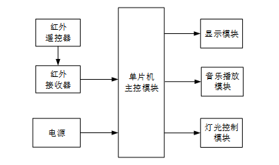 在系统方案设计中,以STC89C52单片机为主控制中心,通过与红外模块和BY8001音乐模块的配合,构建了整个场景控制系统。STC89C52单片机作为系统的主控制中心,负责接收并解析来自控制端的控制信息,驱动各个模块的协同工作。红外遥控和接收模块用于发送与接收控制信息,实现用户的交互输入。BY8001音乐模块用于存储和播放剧本杀场景所需的音乐、声音效果等音频资源,通过单片机的控制实现音频的播放和切换。系统通过LCD1602液晶显示模块实现对系统状态、控制信息等内容的实时显示,方便用户了解系统的工作情况。系统还配备了LED灯光控制模块,用于实现场景灯光的控制,包括亮度、颜色、显示效果等。