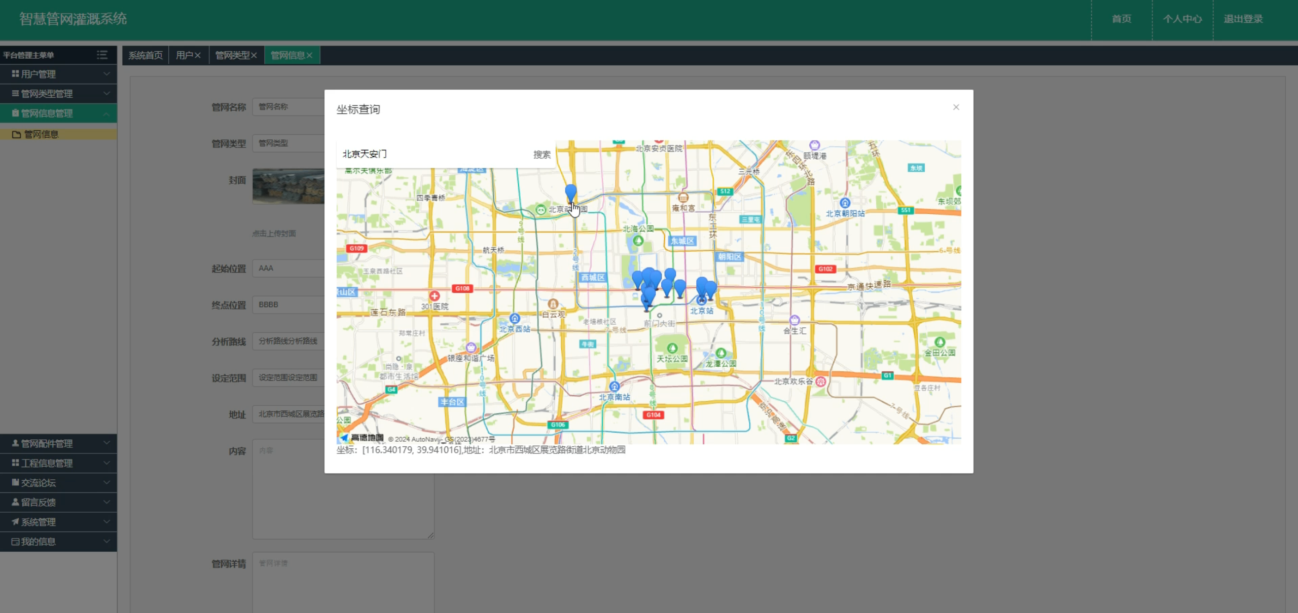 - 基于GIS数据构建管网三维模型,实时映射物理设备状态(如阀门开度、流量值),支持虚拟巡检与故障模拟。