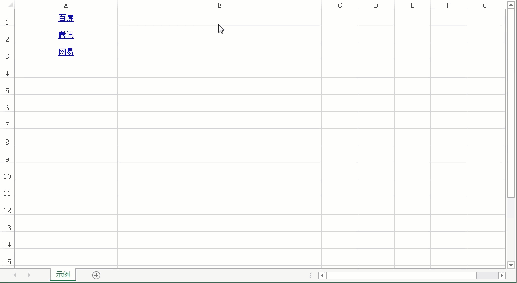 Function GetAdrs(Rng)Application.Volatile TrueWith Rng.Hyperlinks(1)GetAdrs = IIf(.Address = "", .SubAddress, .Address)End WithEnd Function3、首先左键单击选中【B2】单元格,键入自定义函数【=GetAdrs(A1)】,按回车键进行计算。将鼠标指针移动至【B2】单元格右下角,当鼠标指针变成【+】号后,长按鼠标左键并向下拖动进行公式填充。