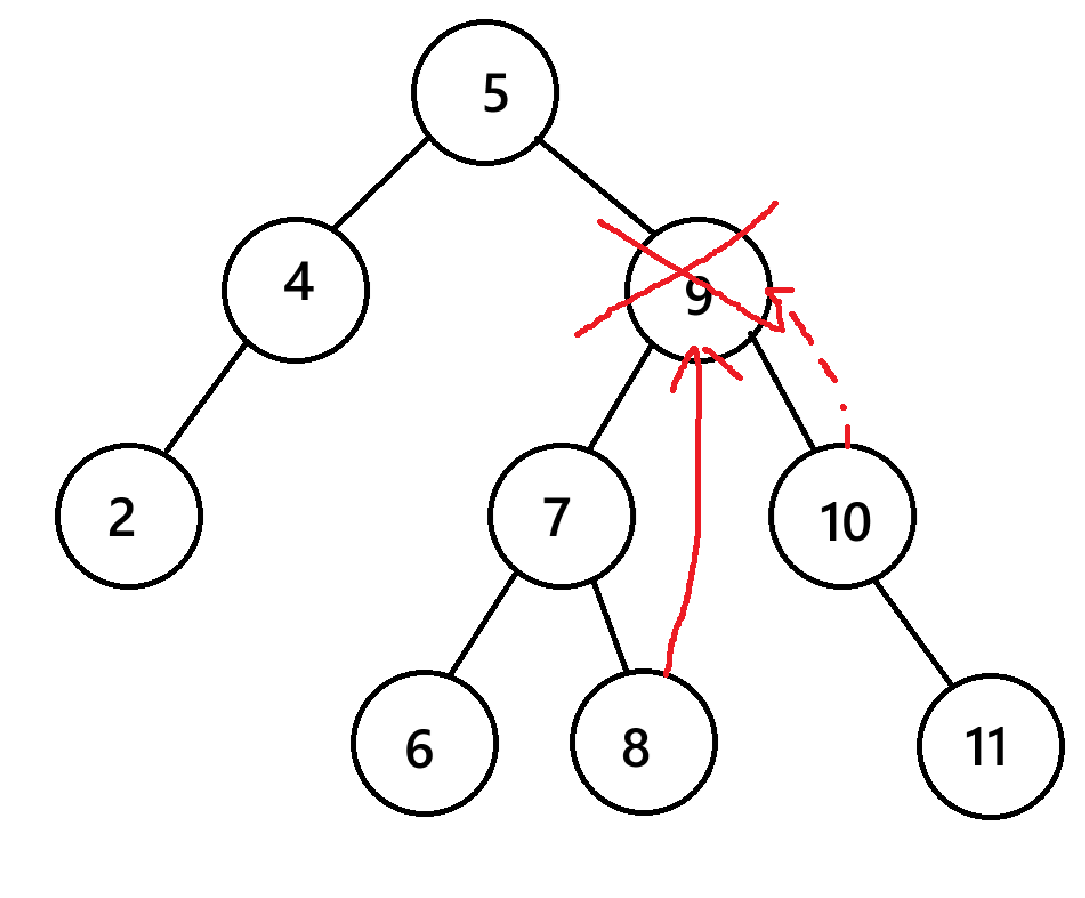 这种情况是最为复杂的,怎么办呢?我们应该在下面寻找一个新的节点代替它的位置,找谁替代?当然是左子树 key 最大的那个或者是右子树 可以 最小的那个。