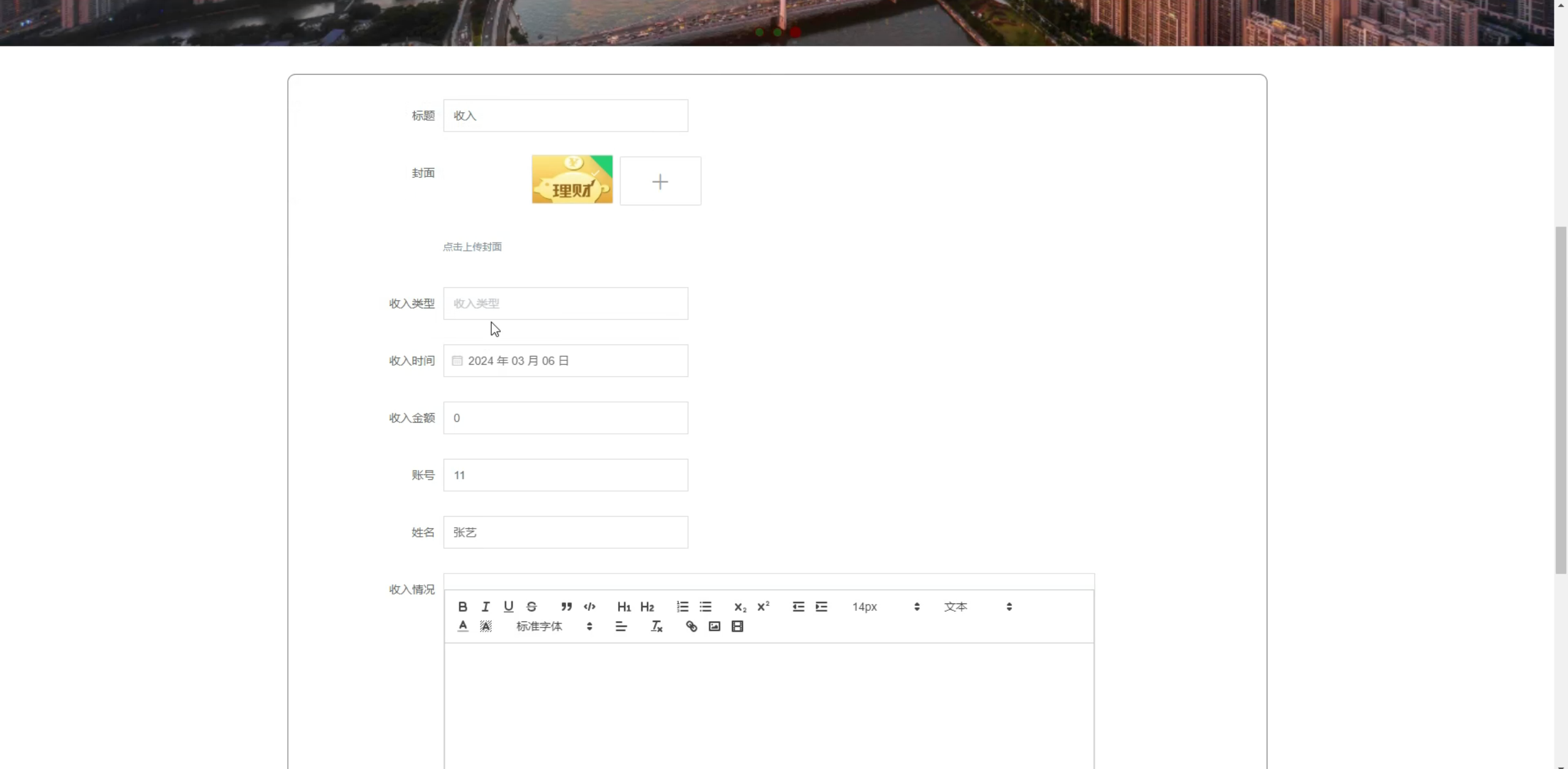 - 前端开发:搭建Vue项目骨架,实现注册登录、收支录入、图表展示等页面。