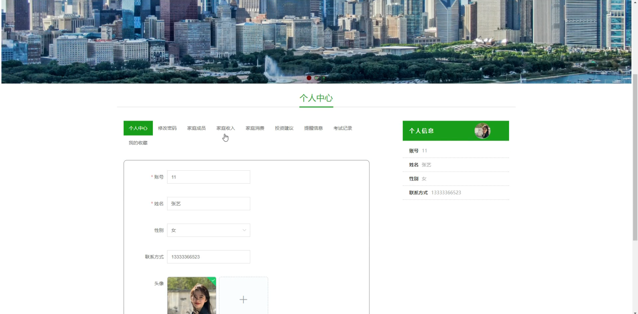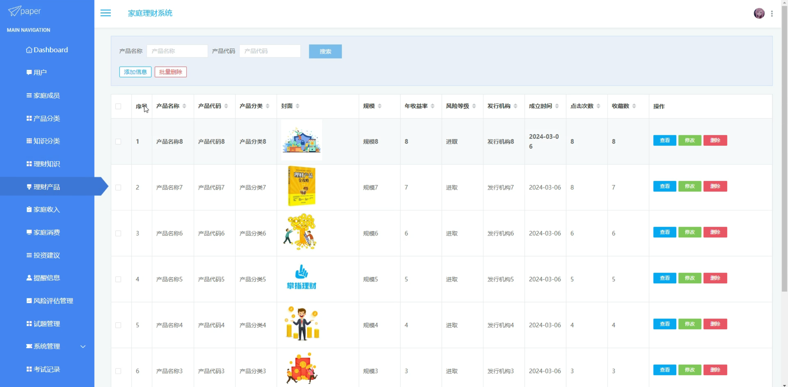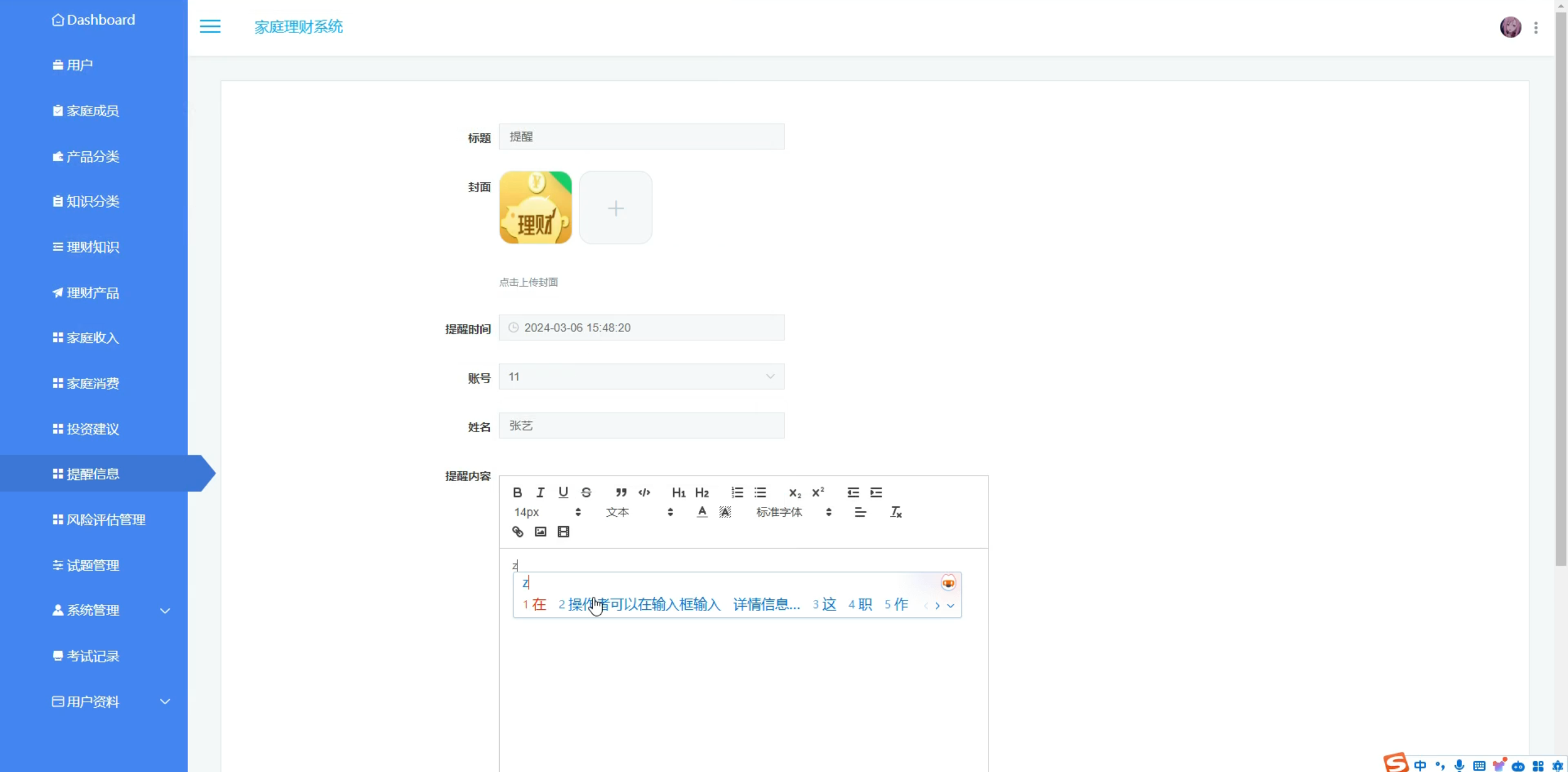 家庭消费,投资建议,提醒信息,风险评估管理,试题管理,考试记录
