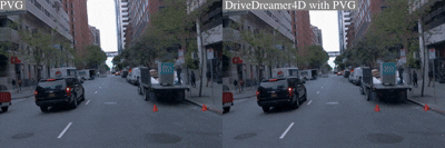演示视频 1 基线方法PVG与DriveDreamer4D的生成效果比较